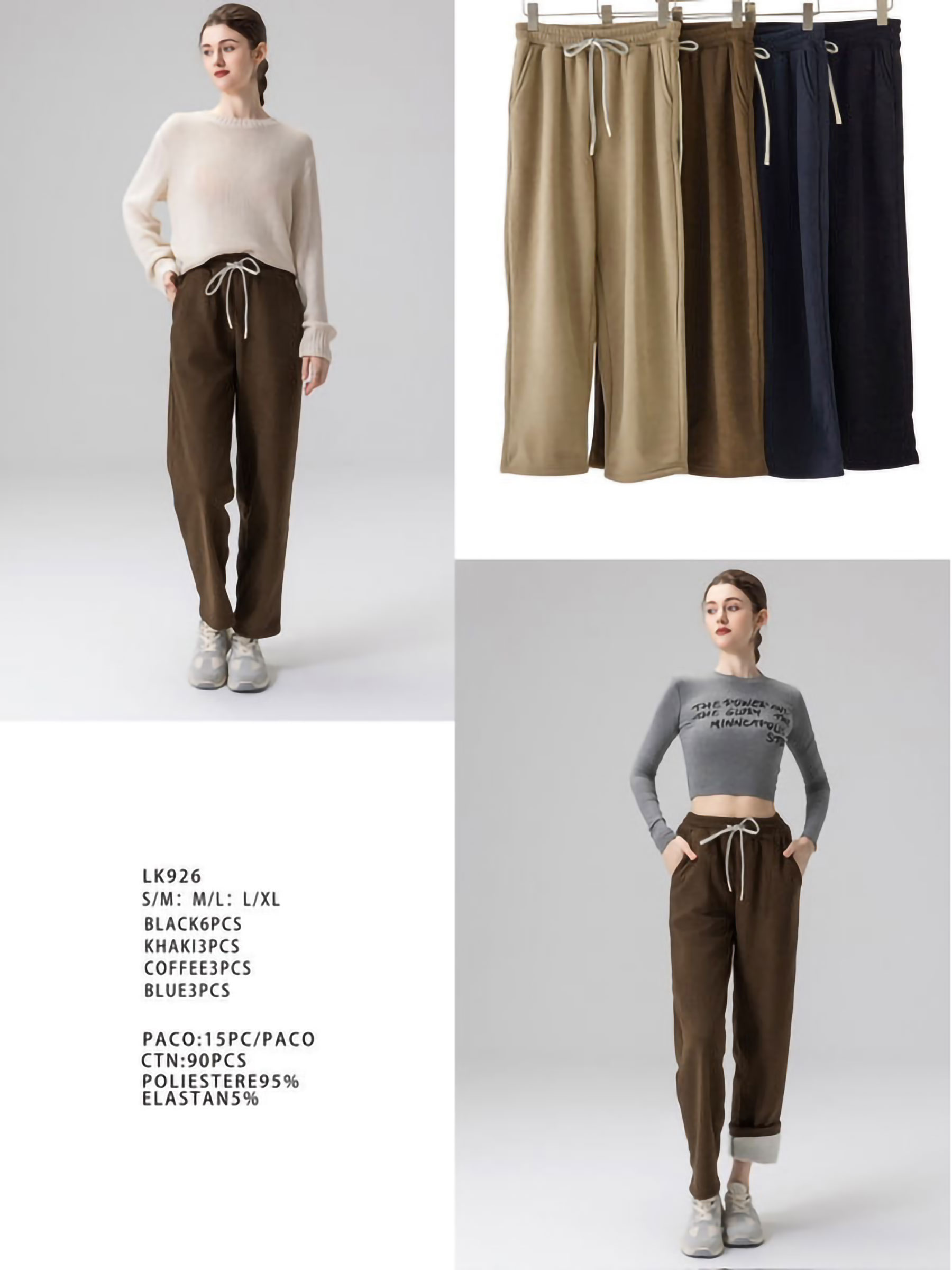 Pantalón de punto de corte recto con cintura elástica y cordón ajustable. Forro interior cálido.