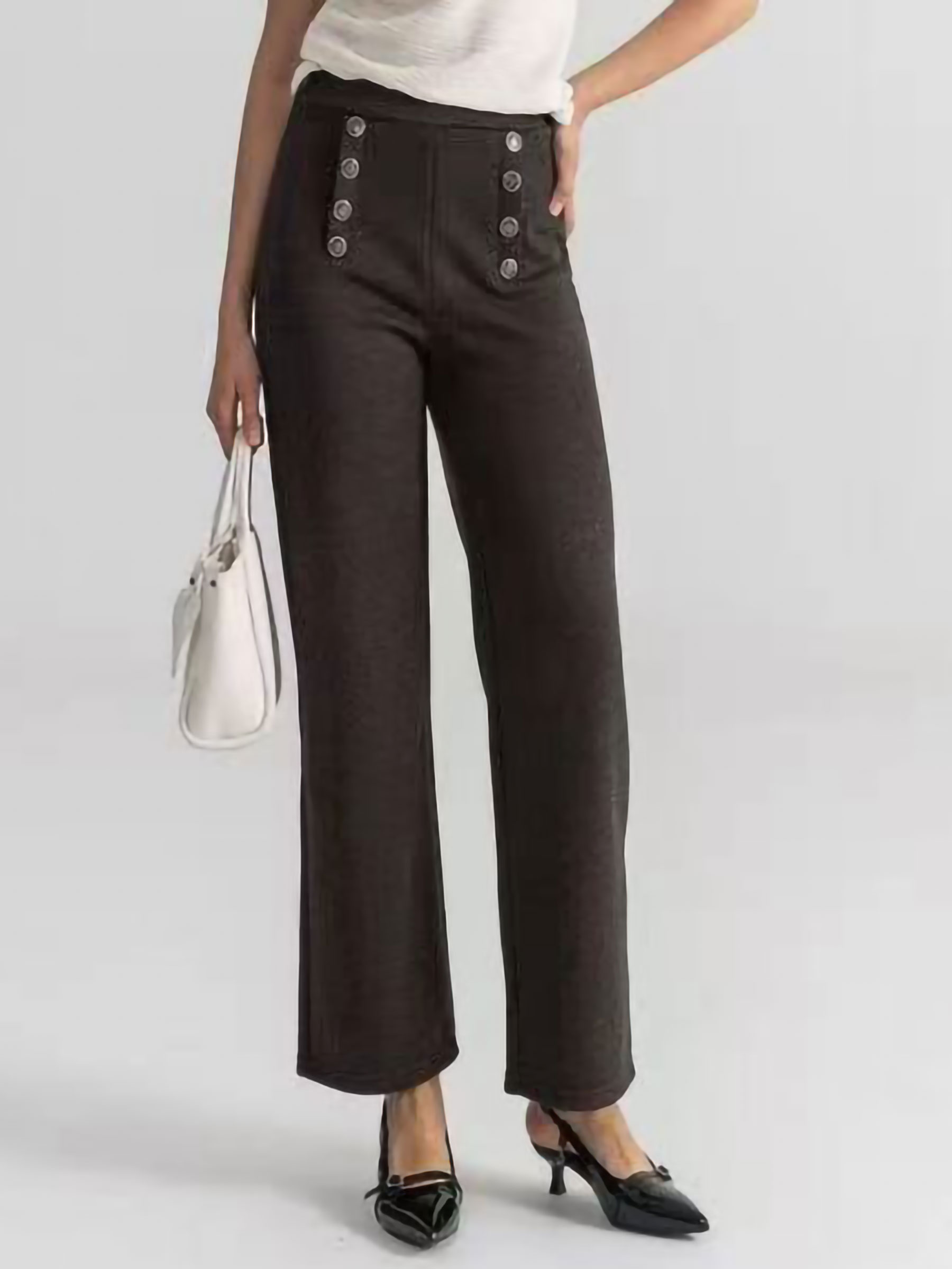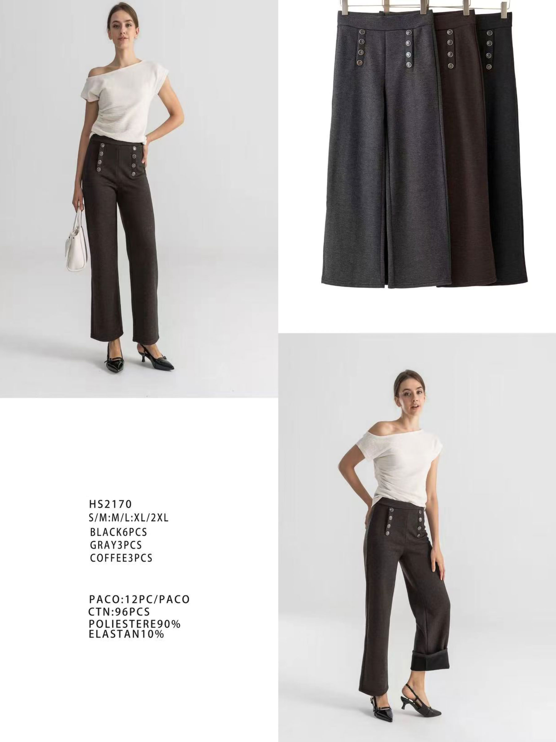 Detalles de pantalón recto punto con botones frontales LS-HS2170