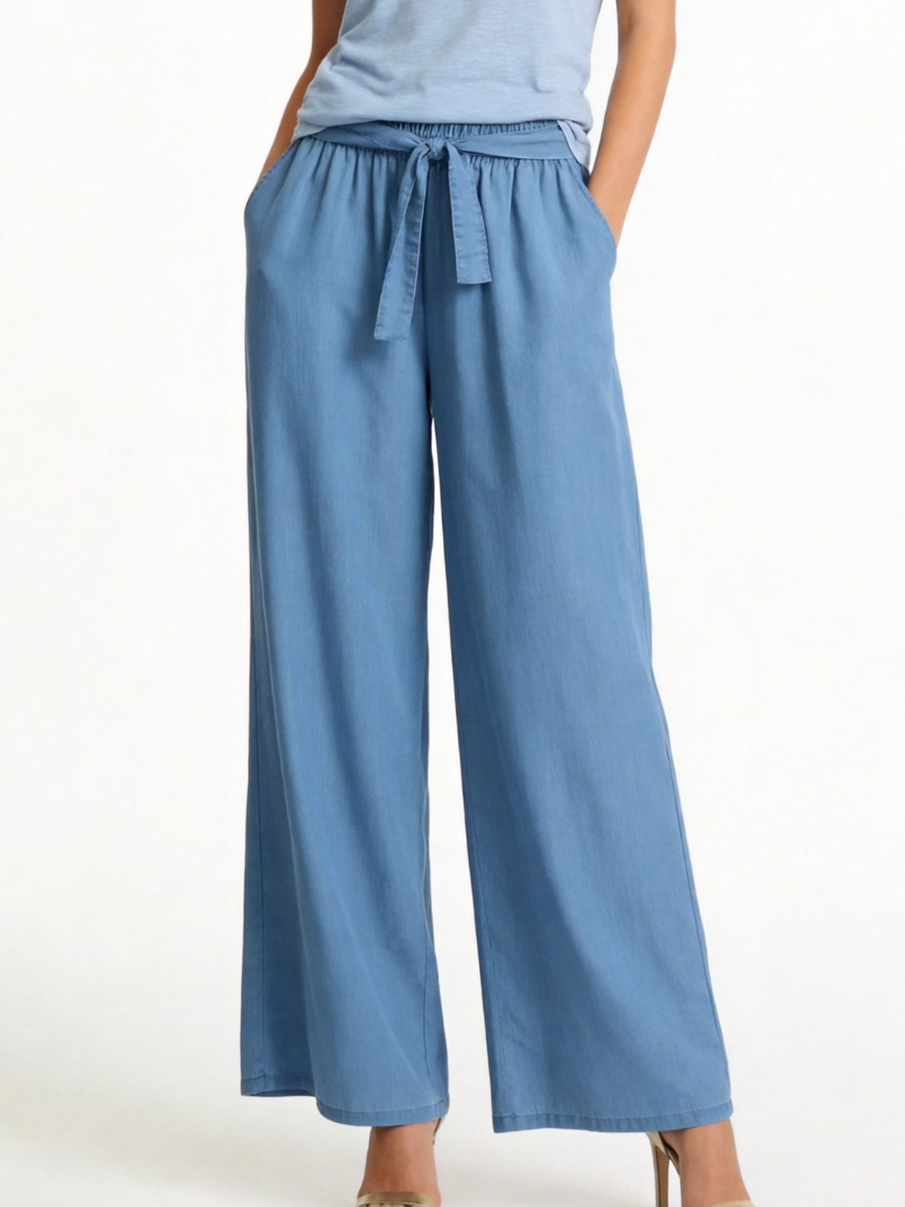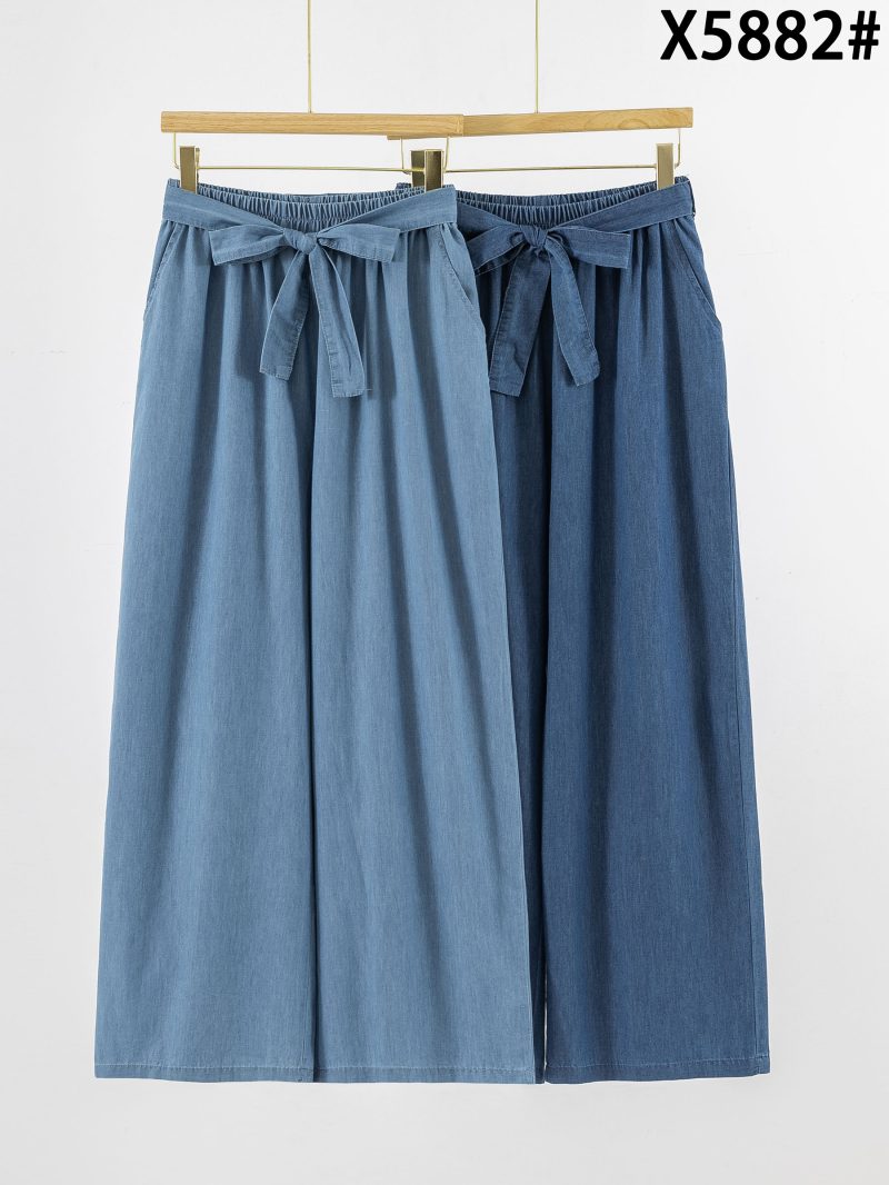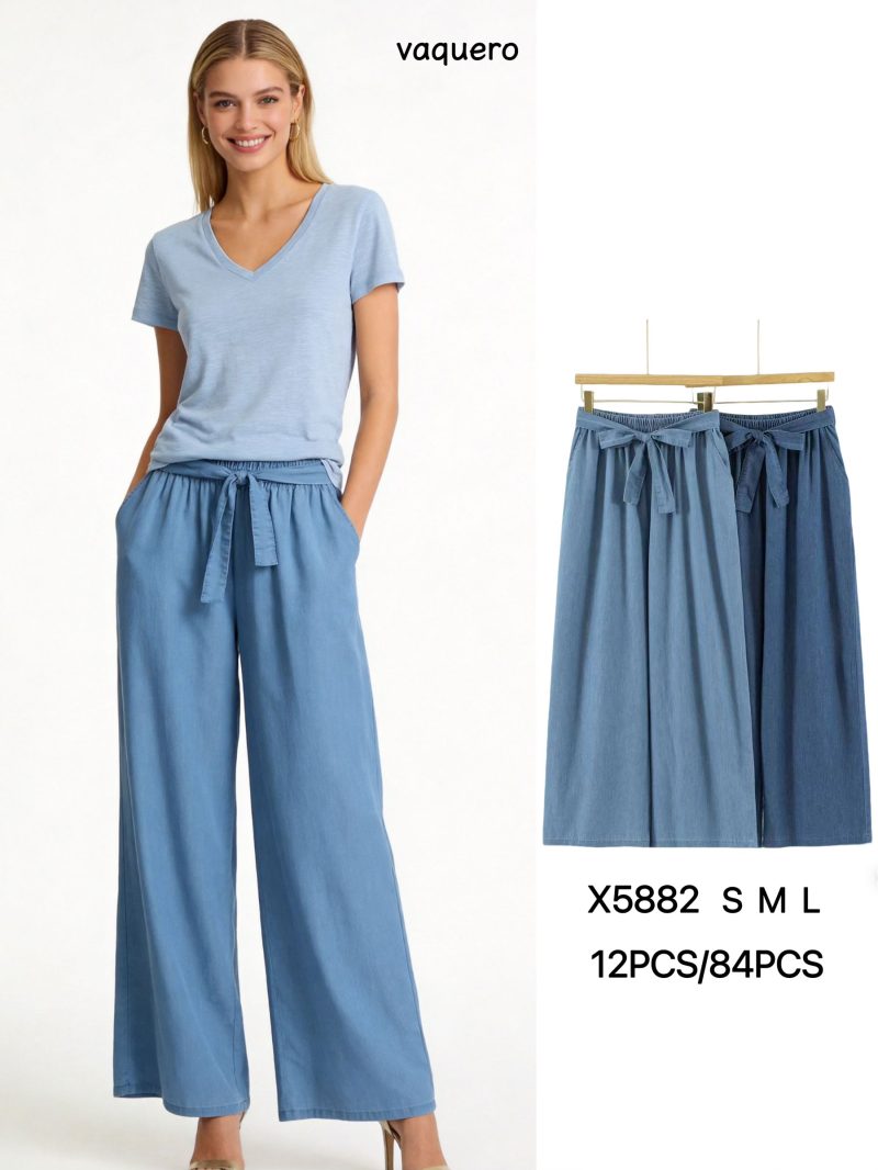 Pantalón wide leg símil denim cintura elástica con lazo