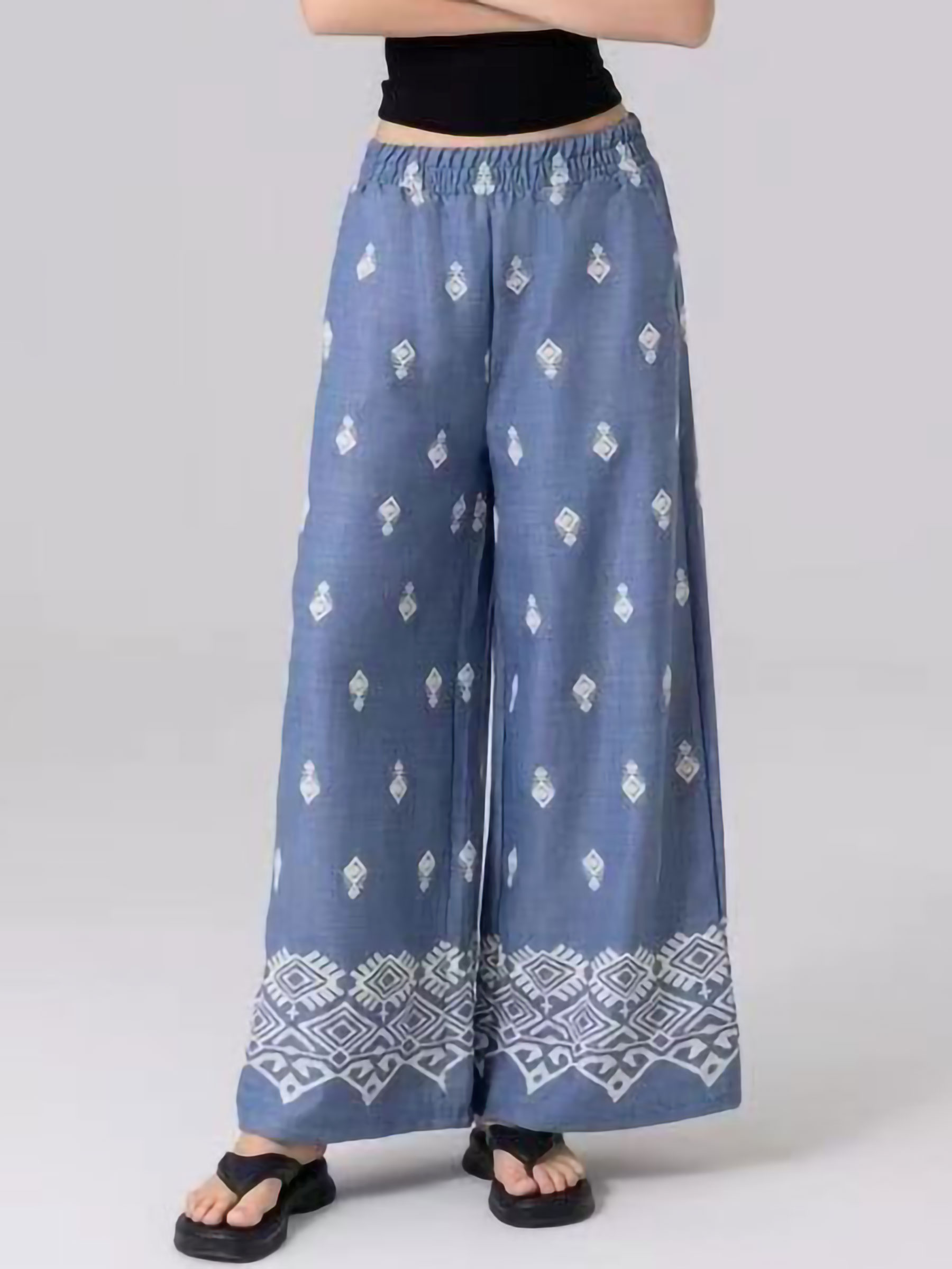 Pantalón wide leg efecto denim estampado boho