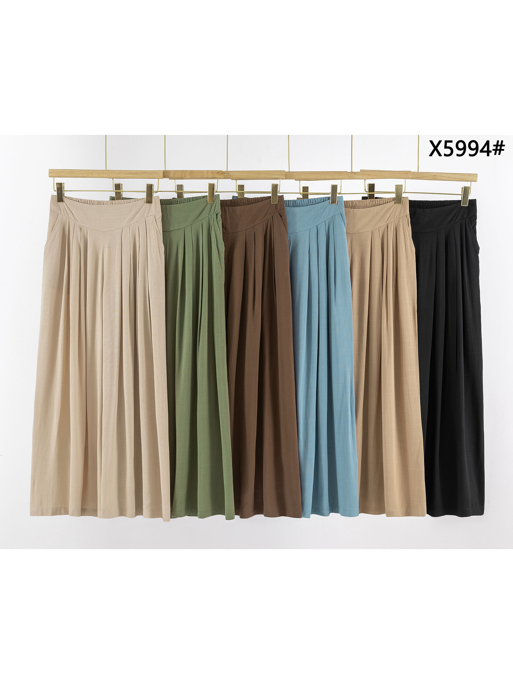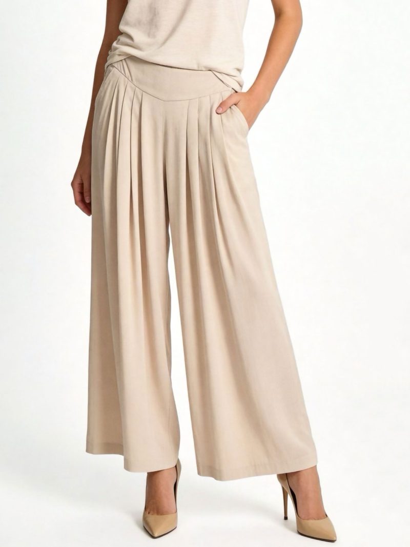 Pantalón efecto lino palazzo pliegues