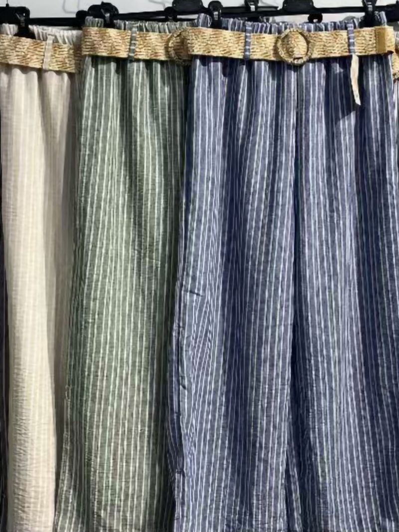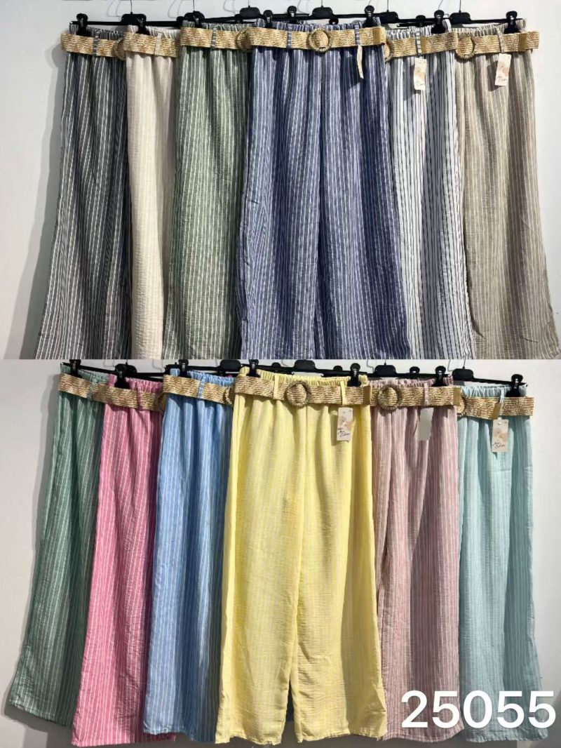 Mín. 6 Pantalones Pantalón wide leg lino cintura fruncida DB-X5887 Pantalón wide leg efecto lino. Cintura fruncida elástica. Bolsillos laterales. Ver precio