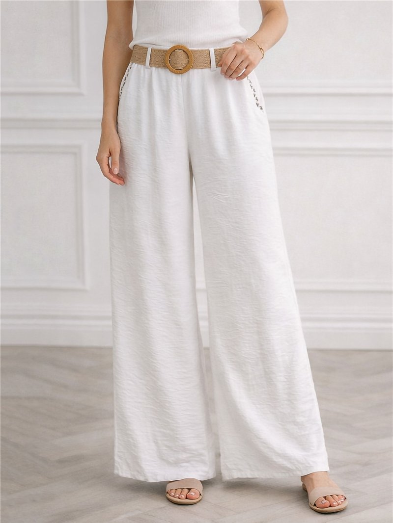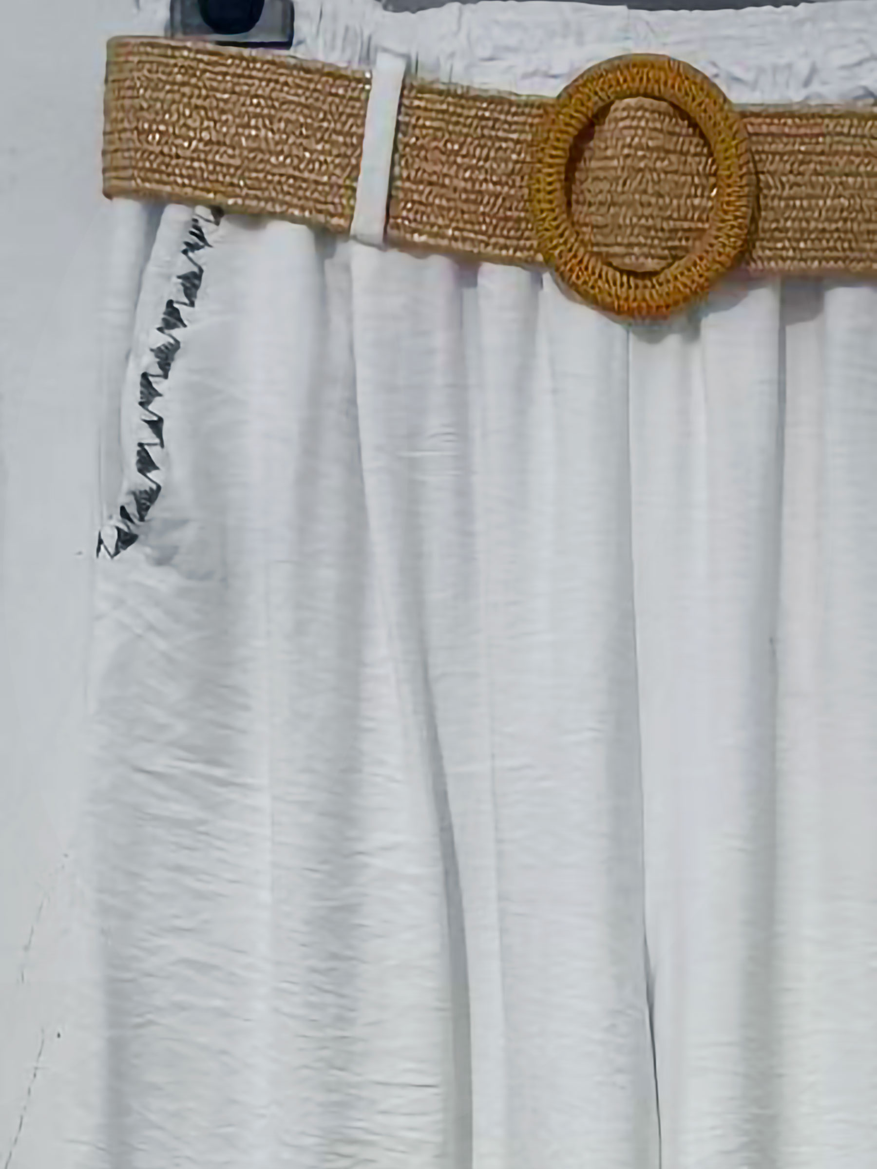 pantalón wide-leg ribete contraste con cinturón rafia.