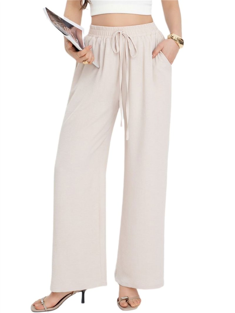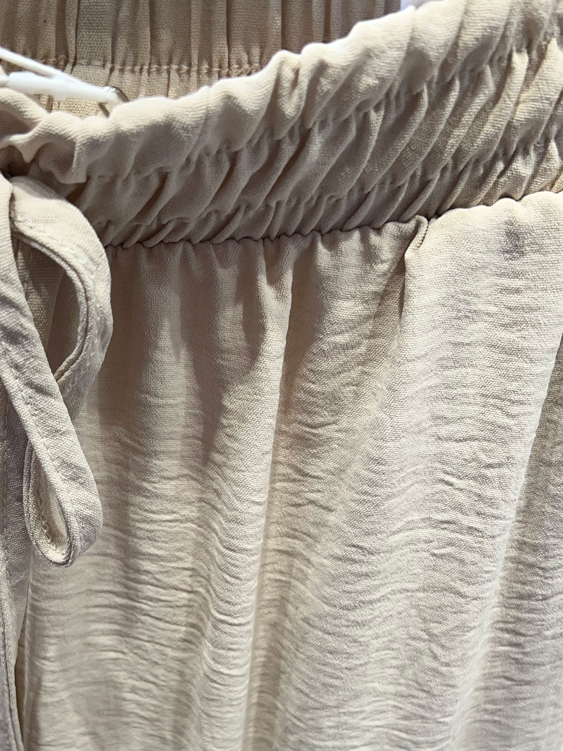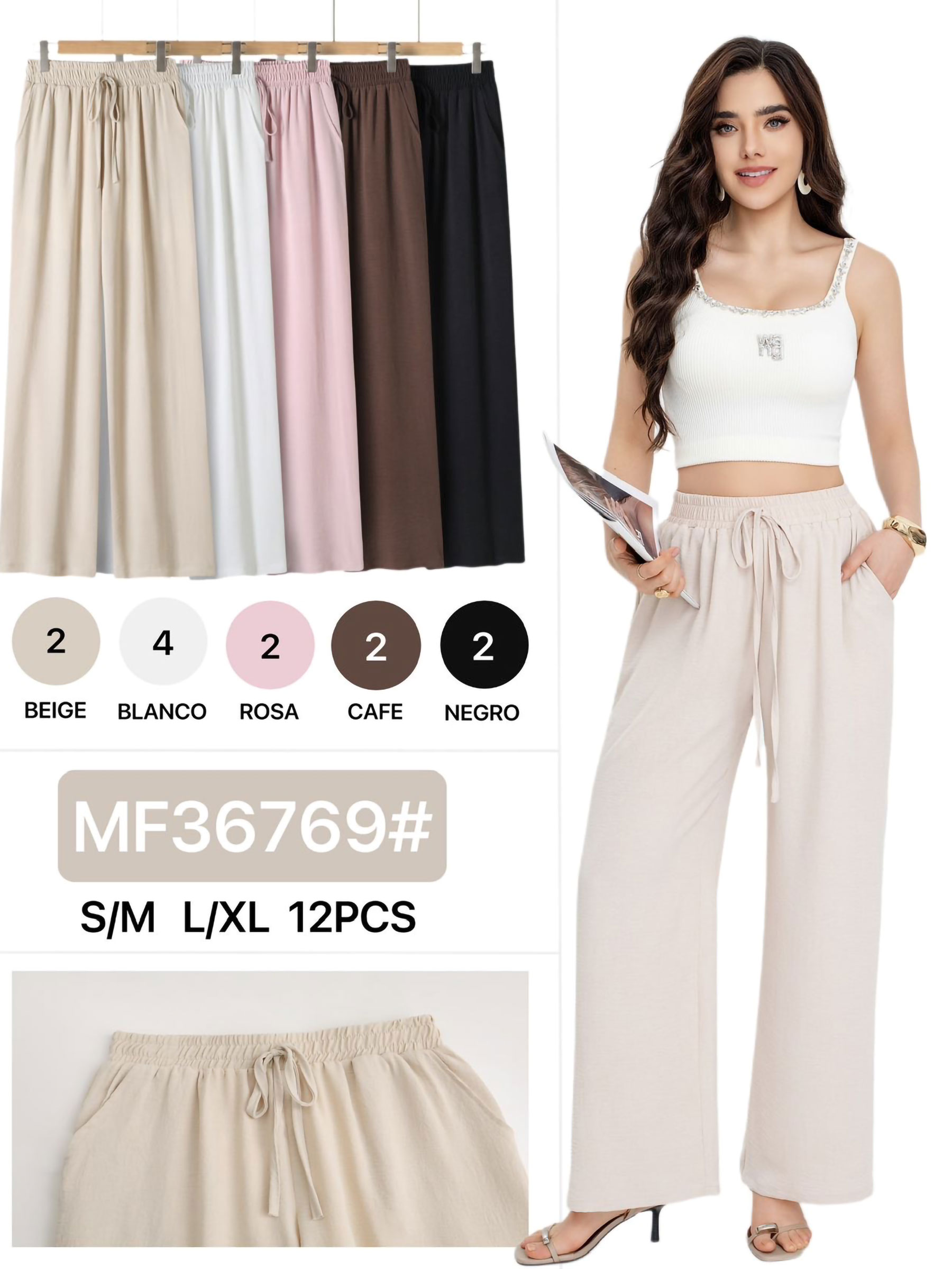 Pantalón ancho. Cintura elástica. Cordón ajustable. Bolsillos laterales. Caída fluida.