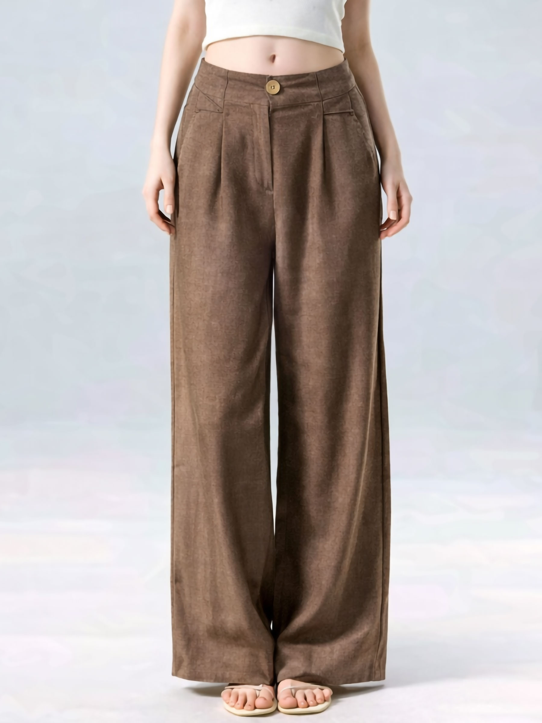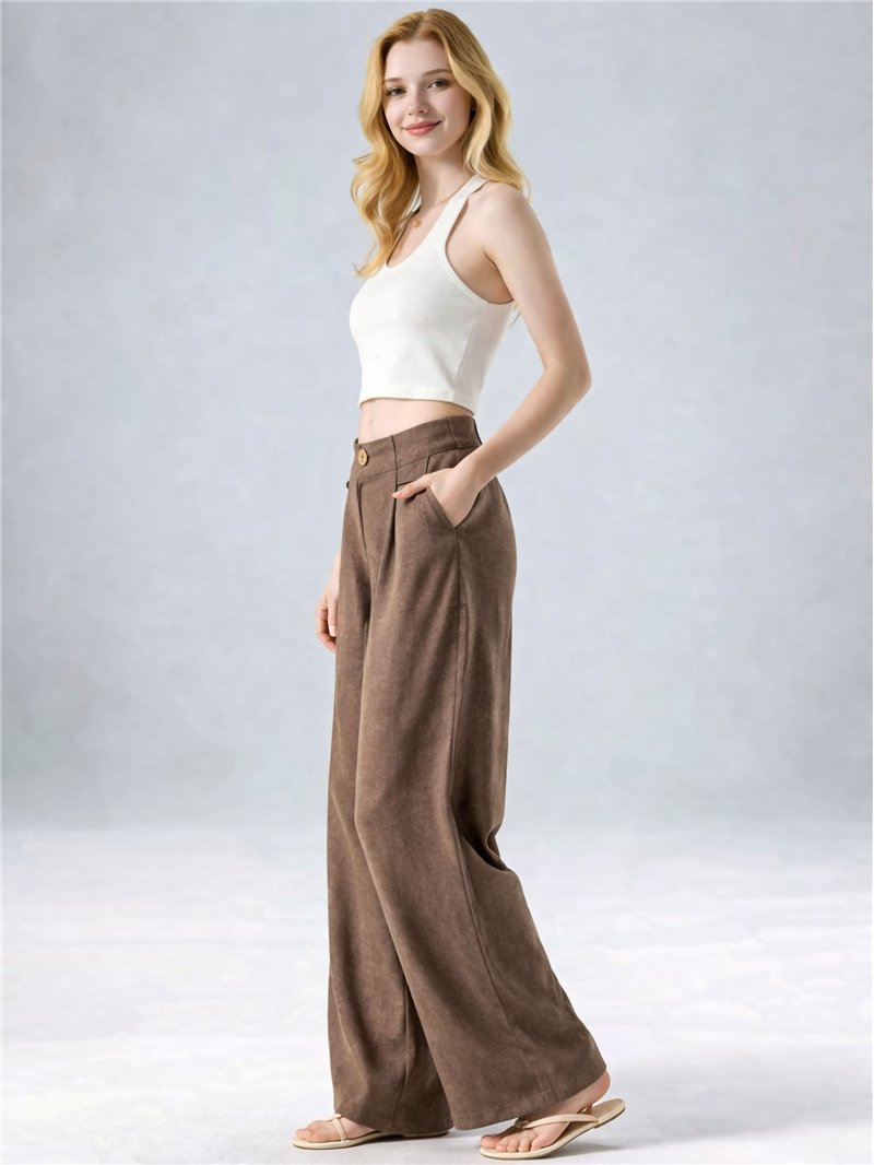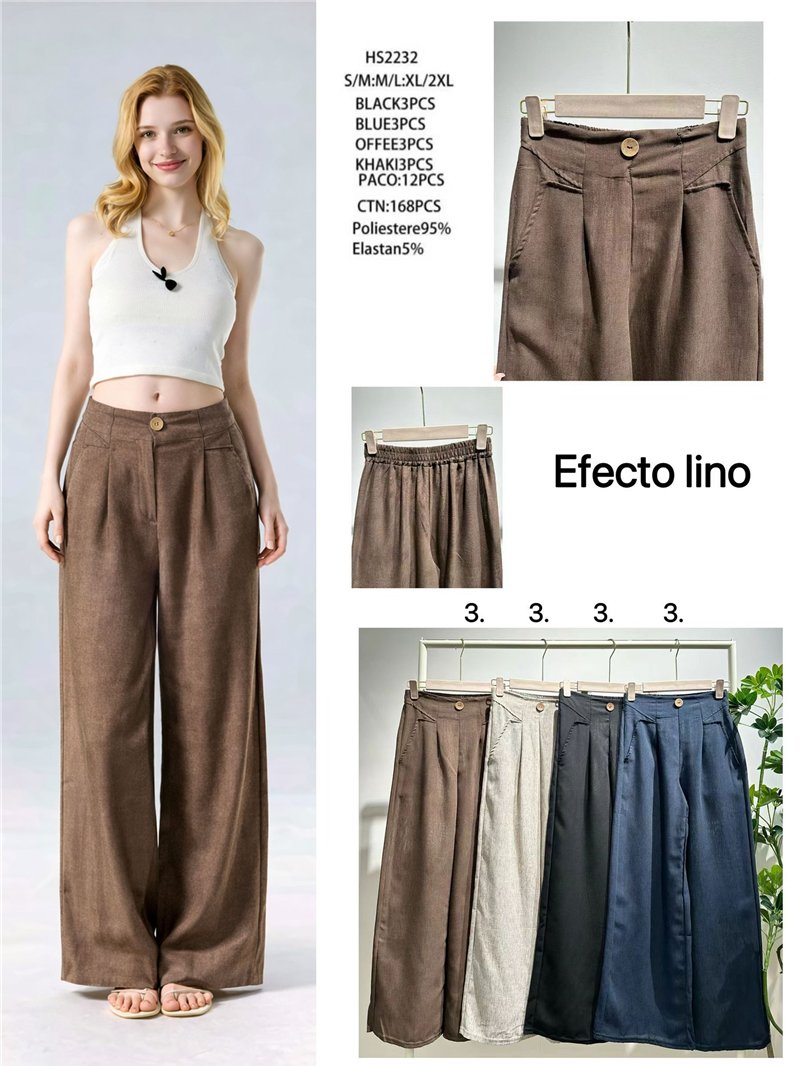 Pantalón palazzo efecto lino de cintura alta