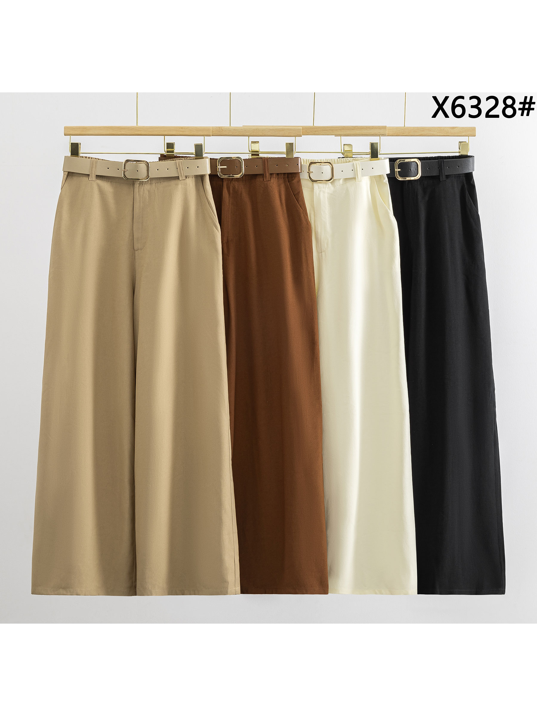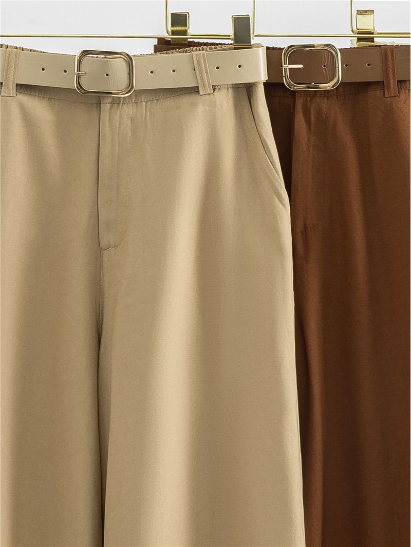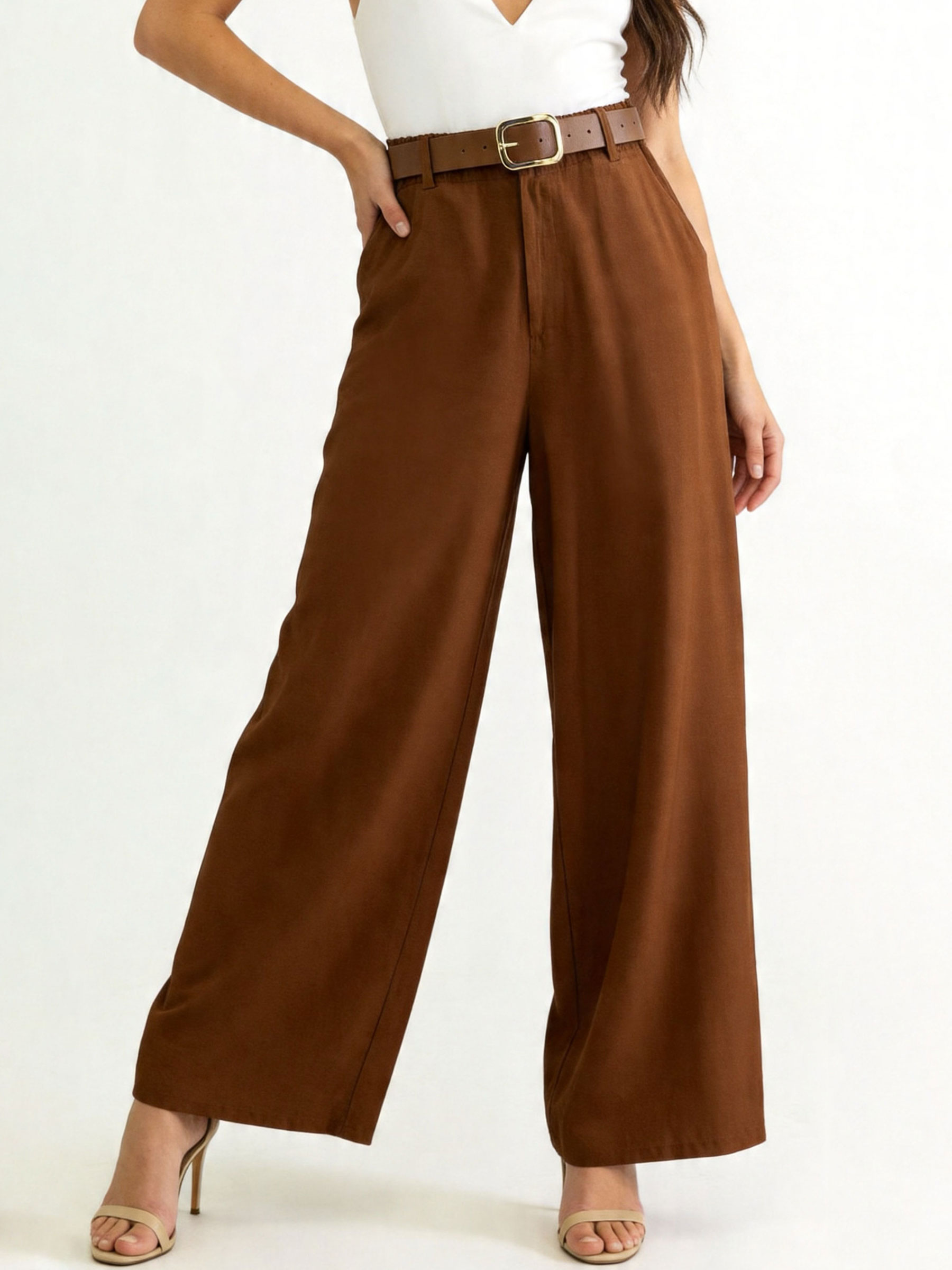 Pantalón wide leg. Tiro alto. Cinturón incluido. Bolsillos laterales.