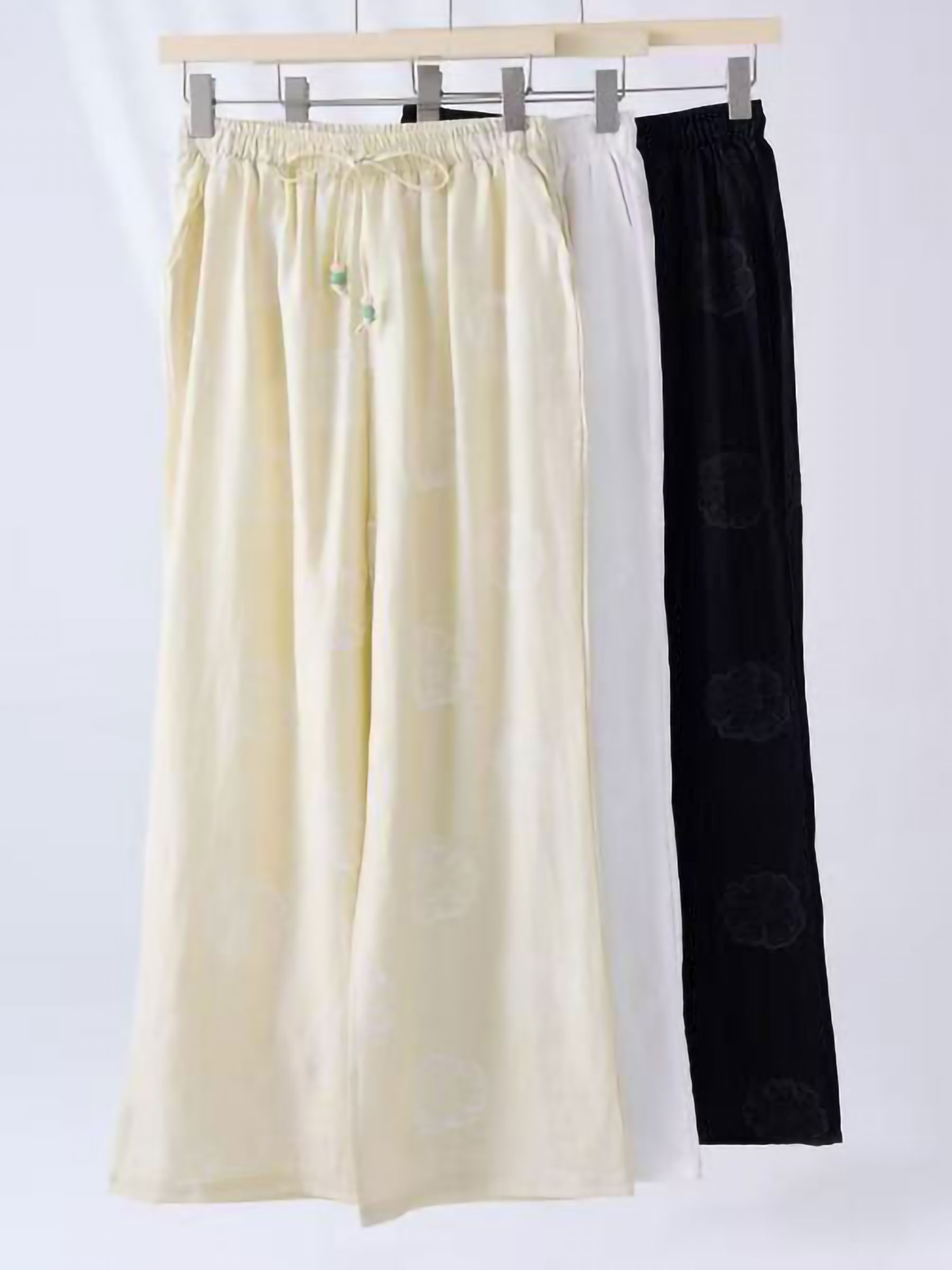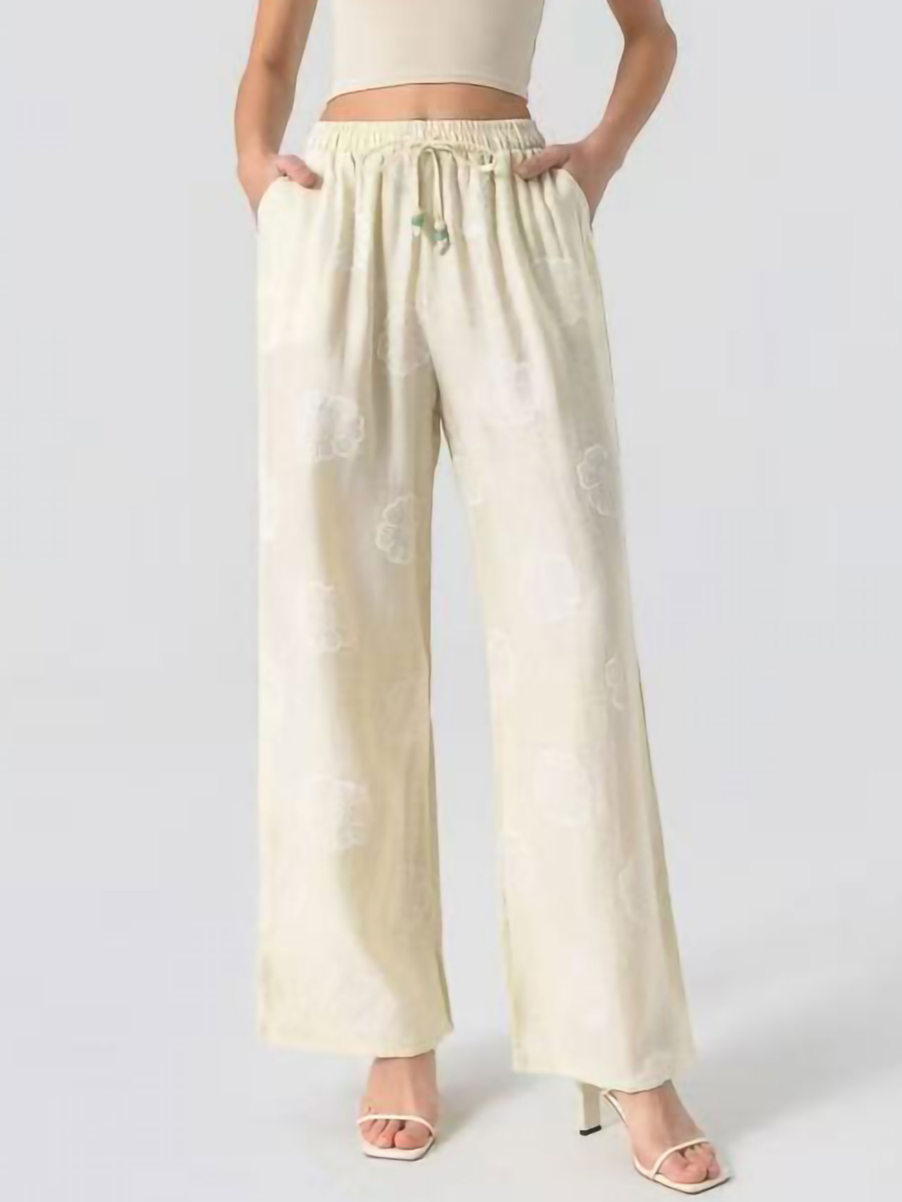 Pantalón palazzo estampado. Cintura elástica. Ajuste mediante cordón con borlas. Bolsillos laterales.