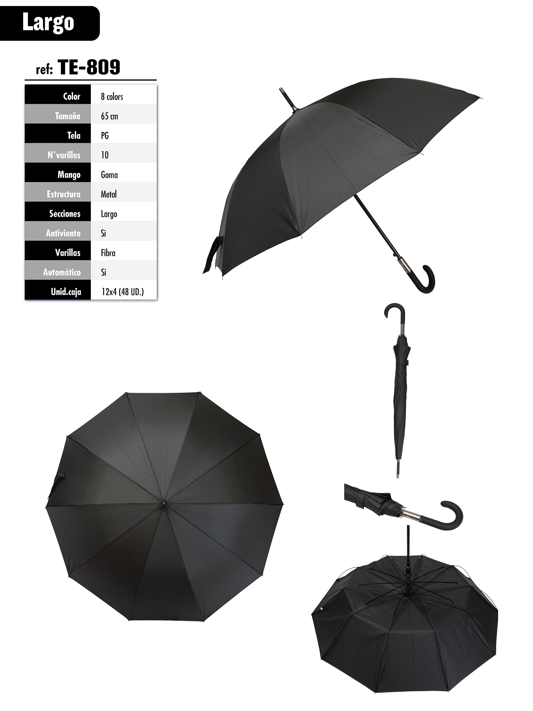 Detalles de paraguas largo automático 10 varillas liso BF-TE809