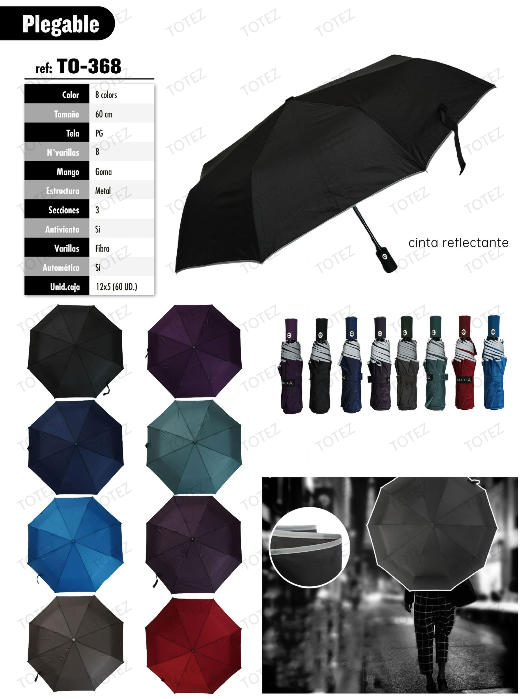 Detalles de paraguas plegable automático con banda reflectante BF-TO-368