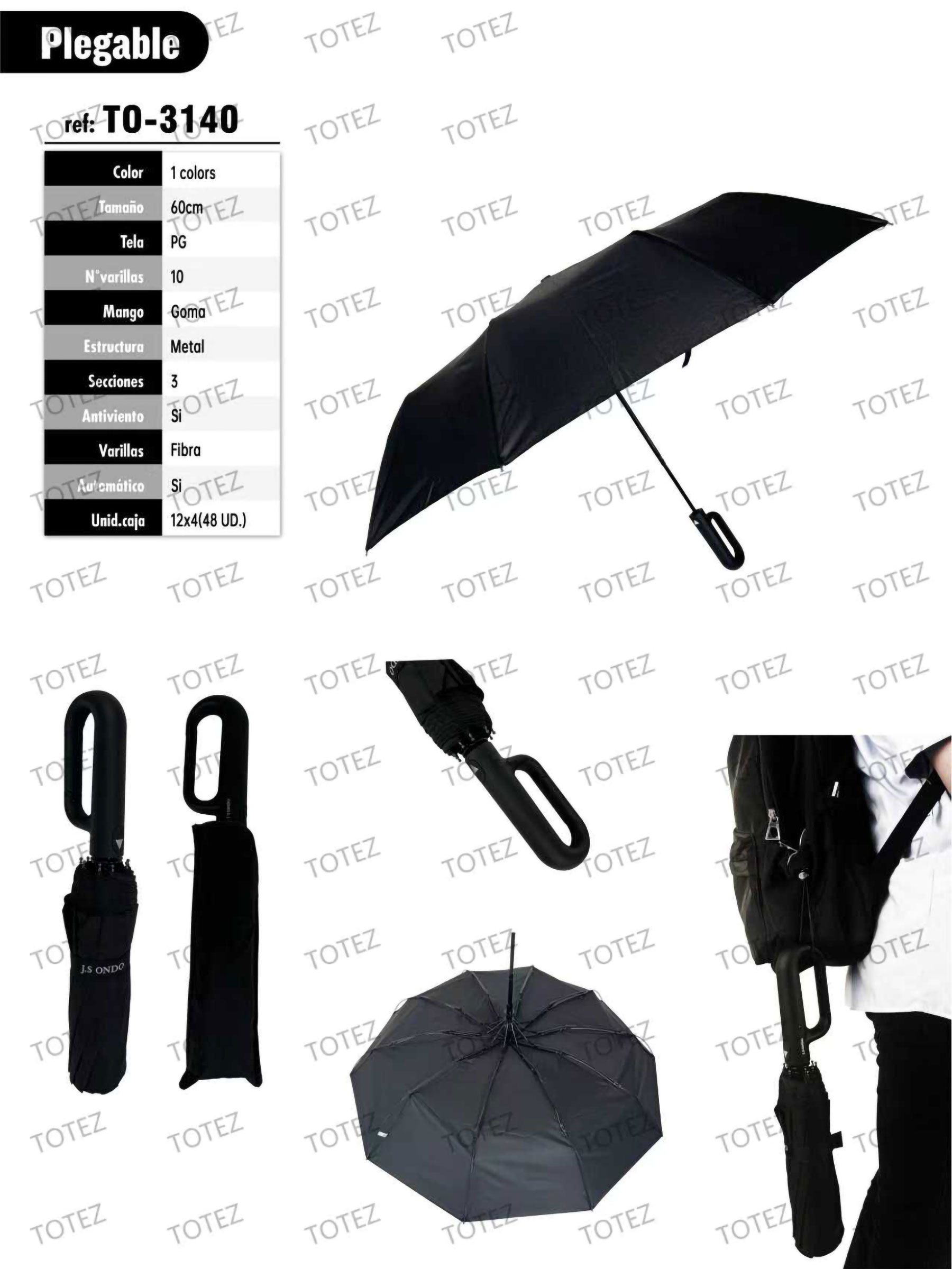 Detalles de paraguas plegable automático mango mosquetón BF-TO-3140