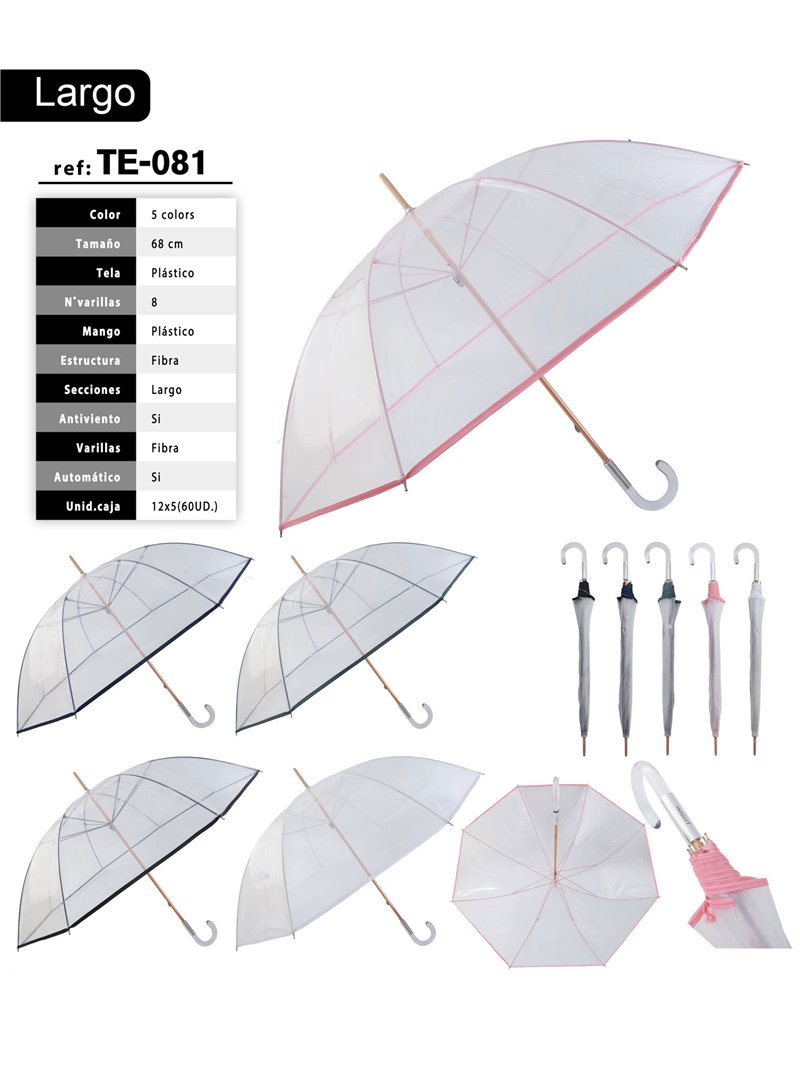 Detalles de paraguas largo automático transparente borde color BF-TE081