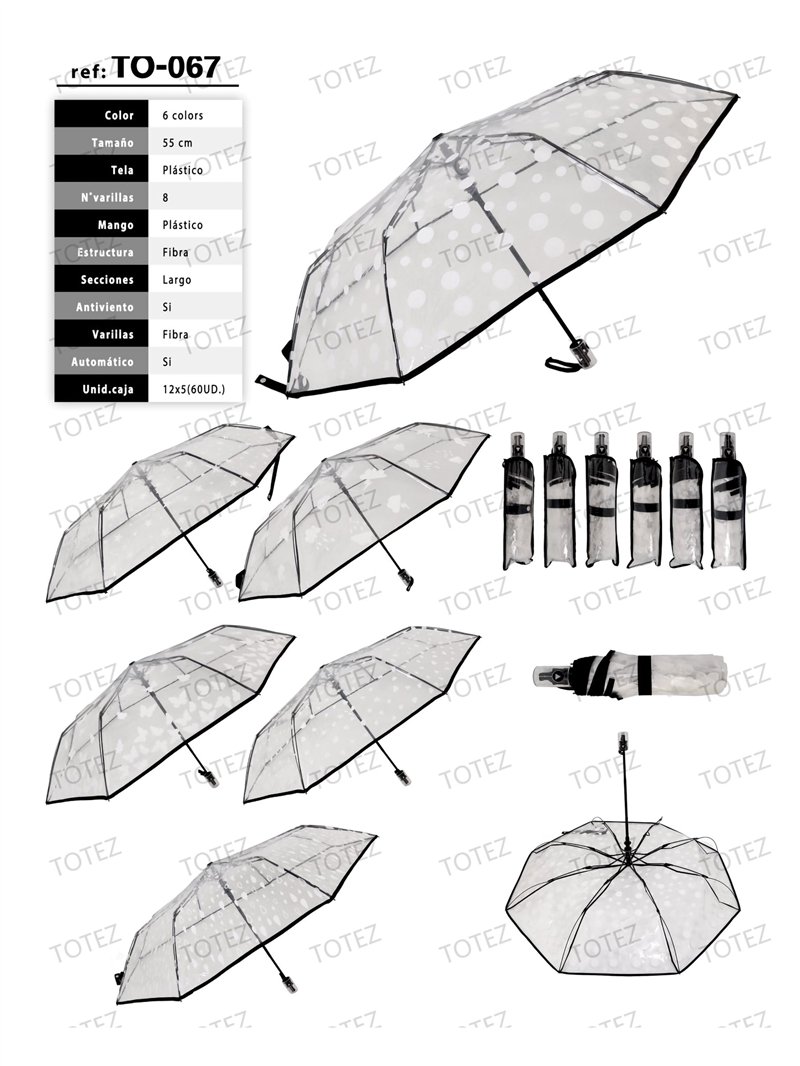 Detalles de paraguas plegable automático transparente estampado BF-TO-067