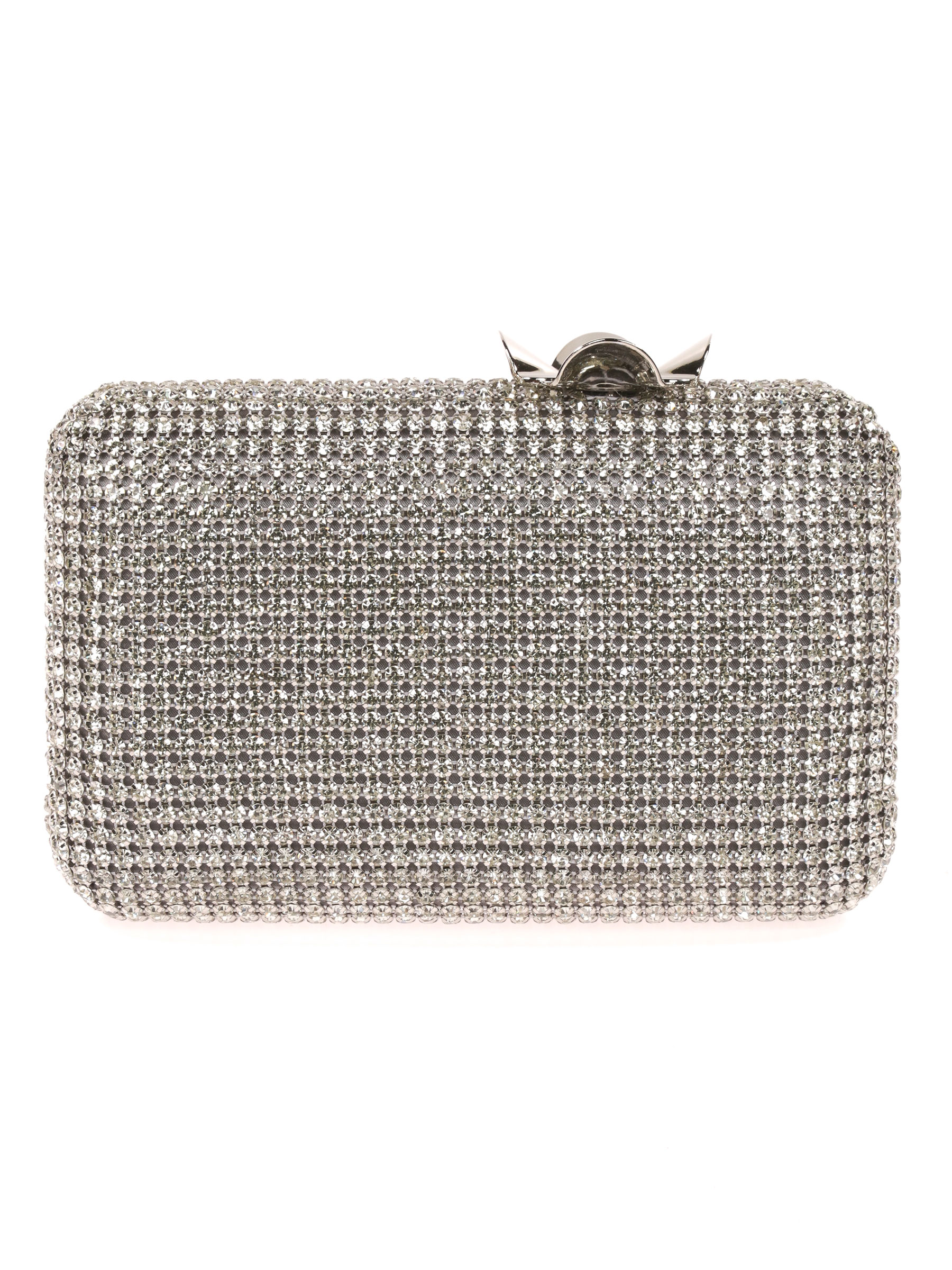Detalles de AD-41415 PLATA clutch fiesta pedrería flor