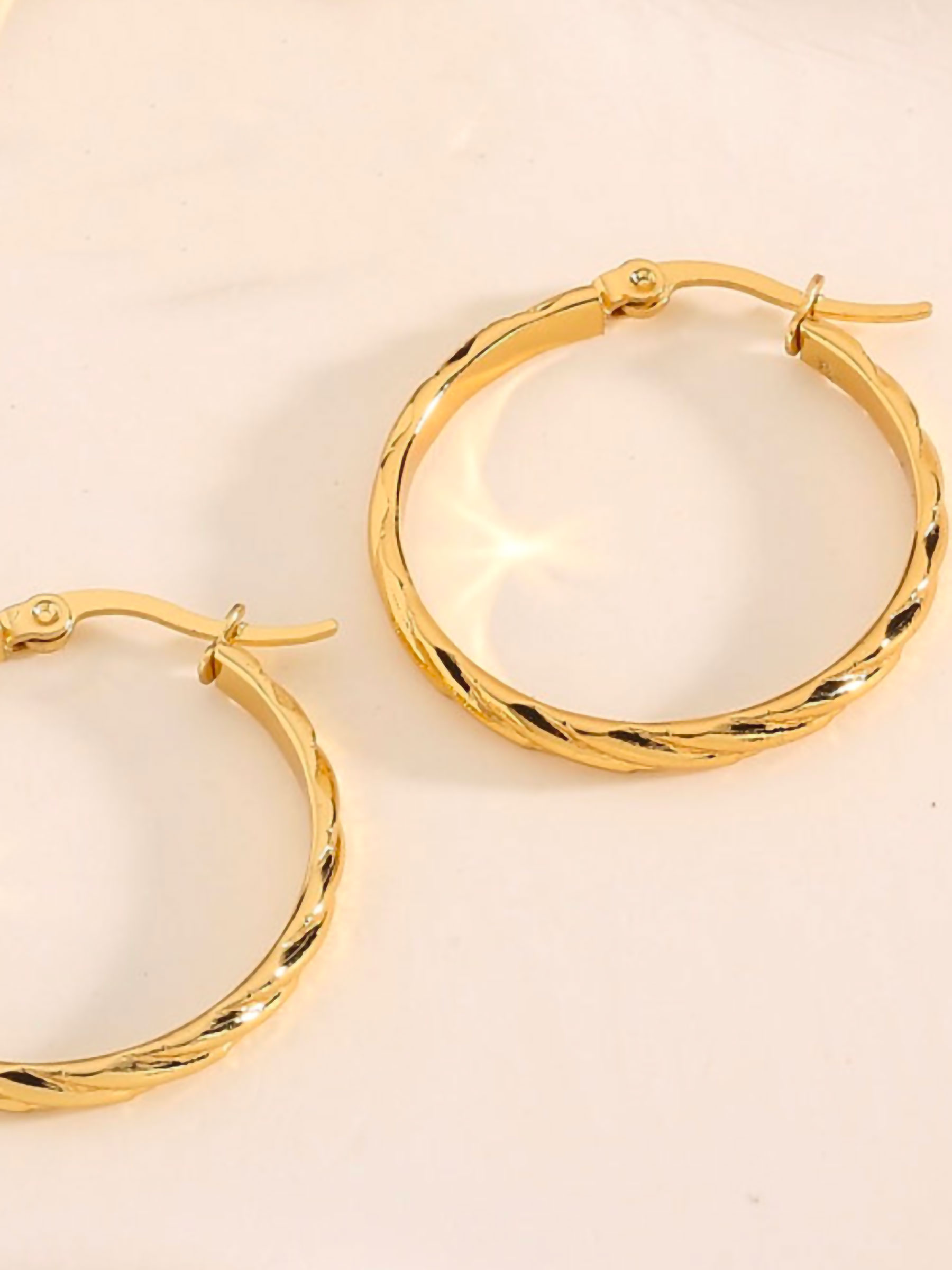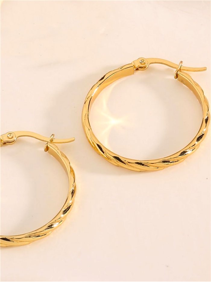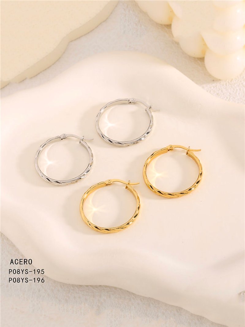 Detalles de pendientes aros medianos trenzados - acero inoxidable BS-YS195-YS196