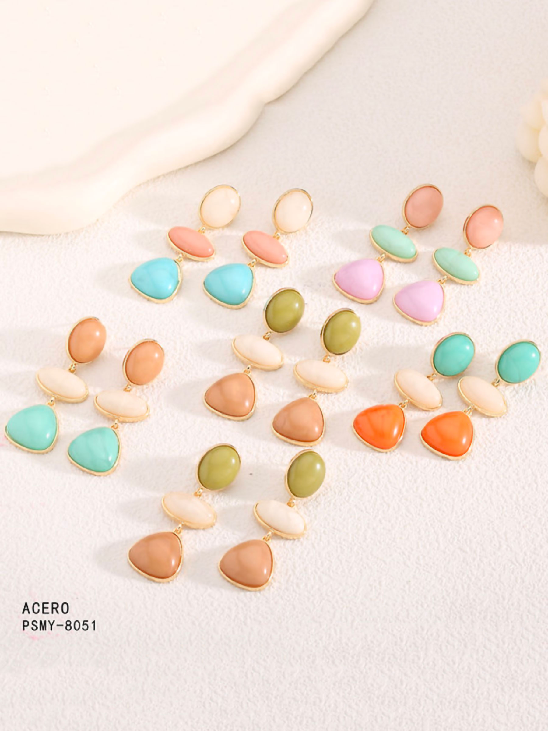 Pendientes largos de resina con efecto piedra. Acero inoxidable. Colores surtidos.