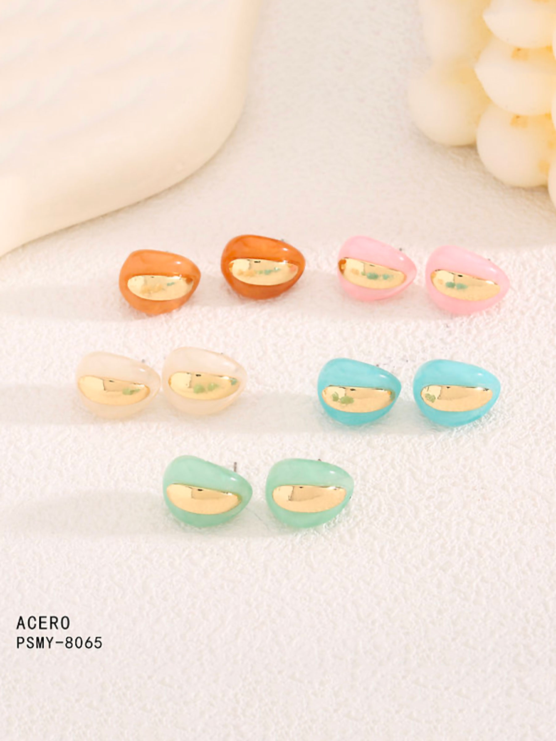 Pendientes ovalados con resina. Acero inoxidable. Colores surtidos.