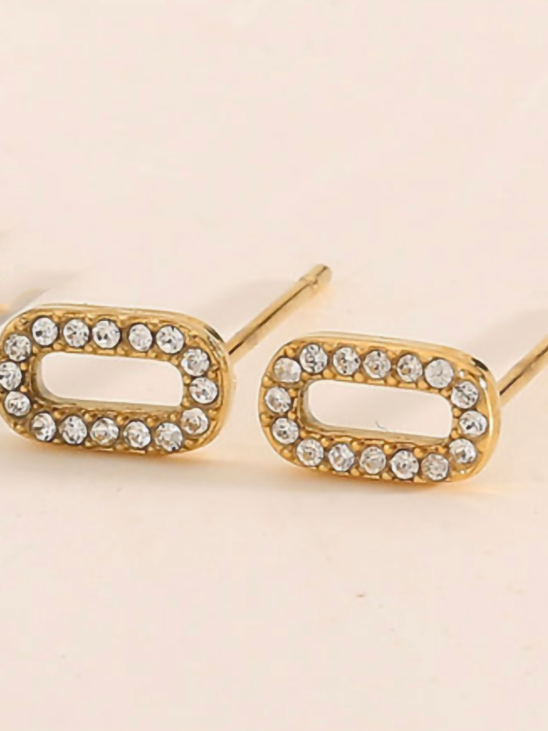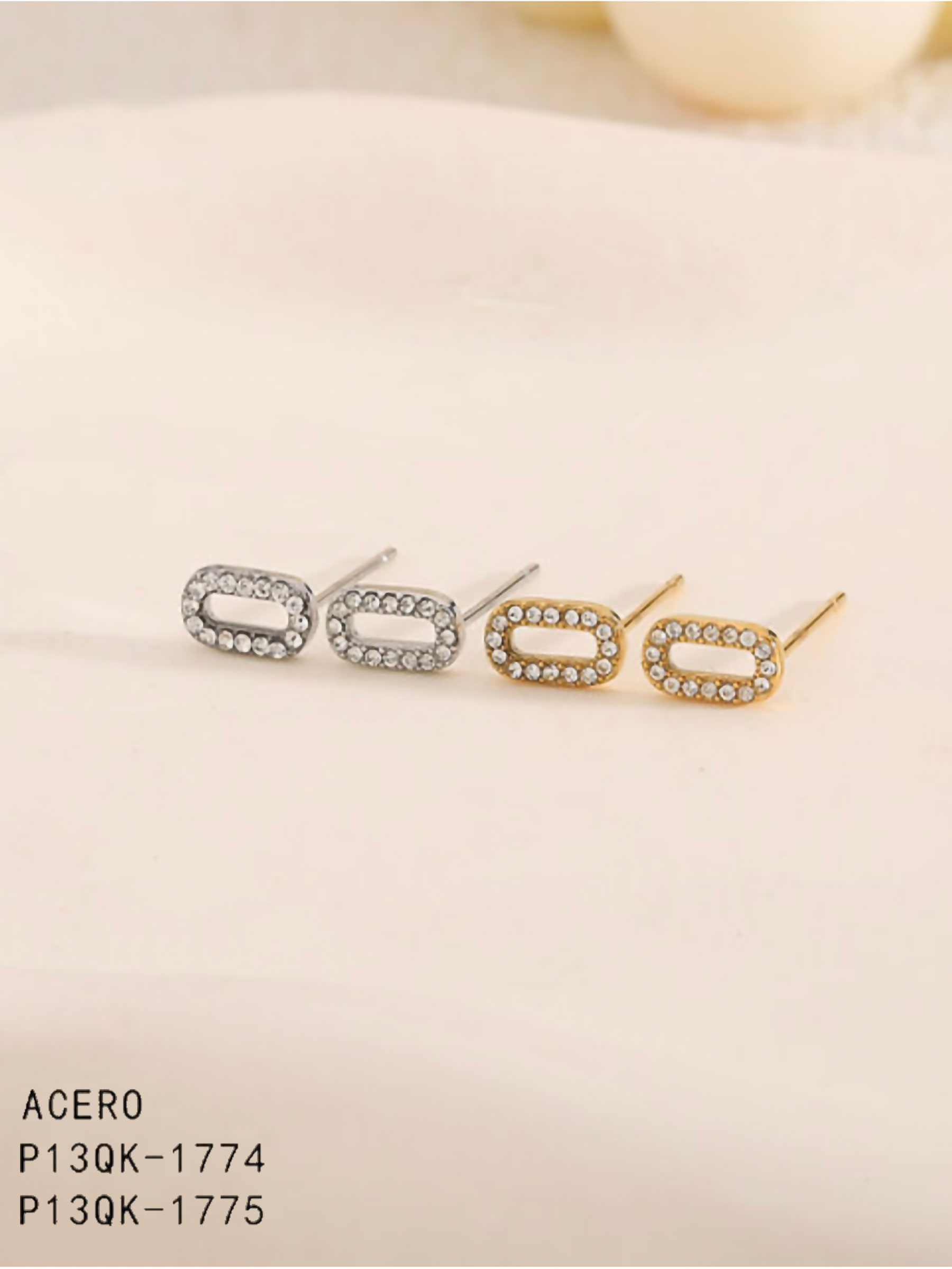 Pendientes aros alargados con circonitas - Acero inoxidable