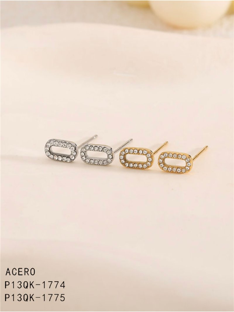 Detalles de pendientes aros alargados con circonitas - acero inoxidable BS-QK1774-QK1775