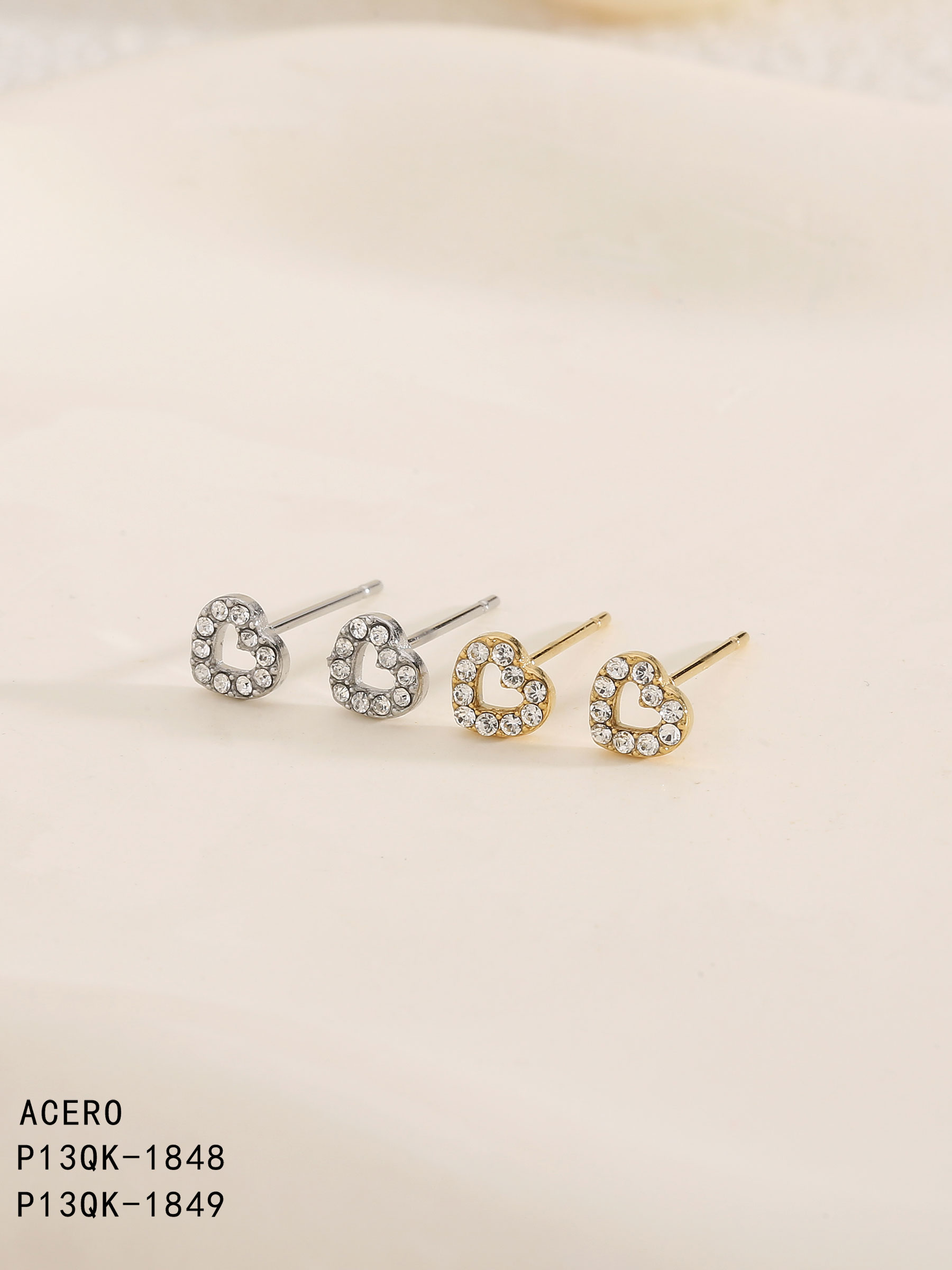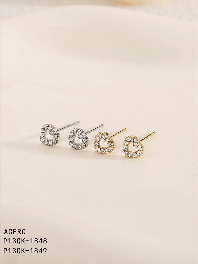 Detalles de pendientes corazón con circonitas - acero inoxidable BS-QK1848-QK1849