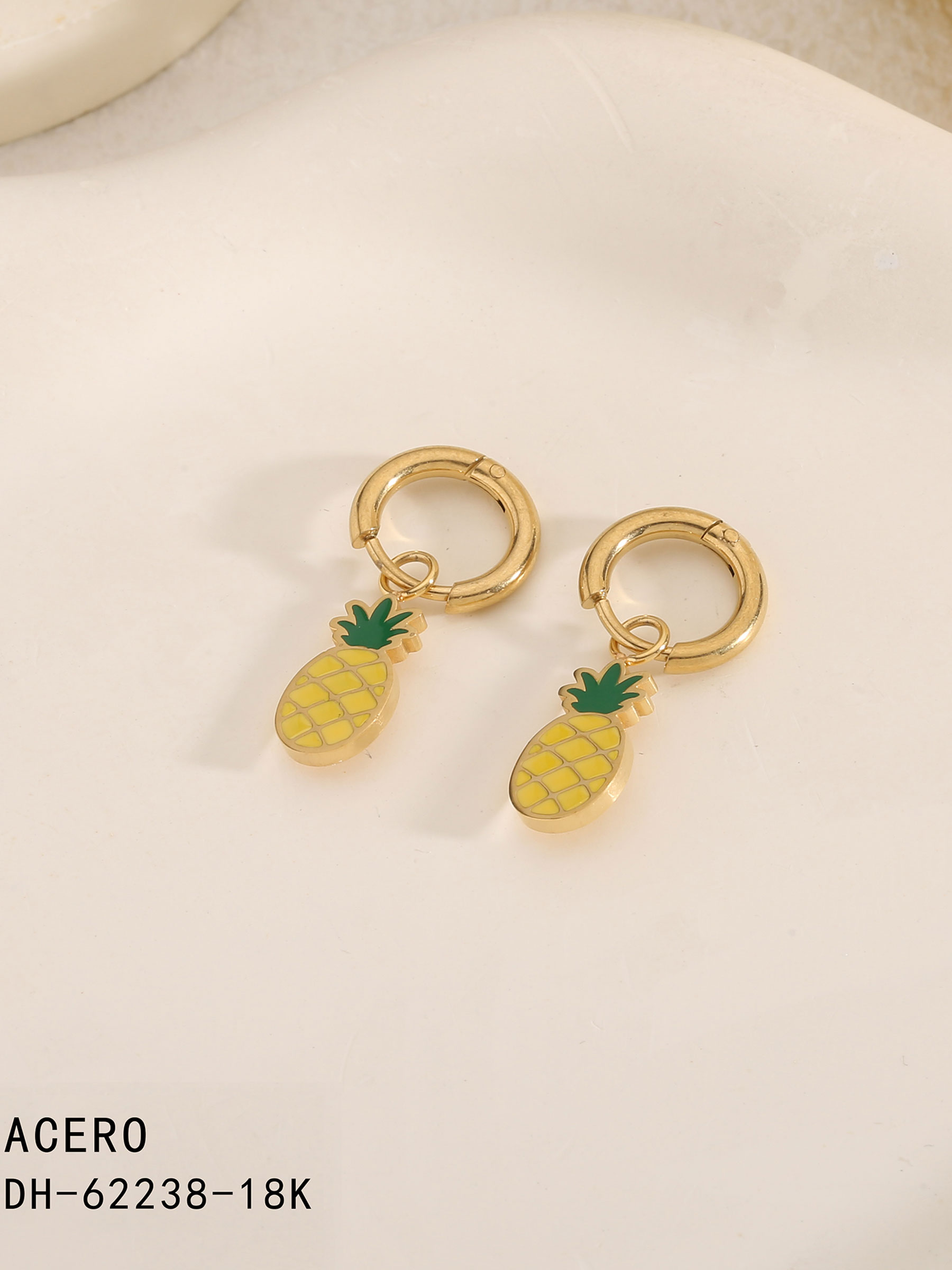 Pendientes aros colgantes con piña esmaltados. Acero inoxidable.