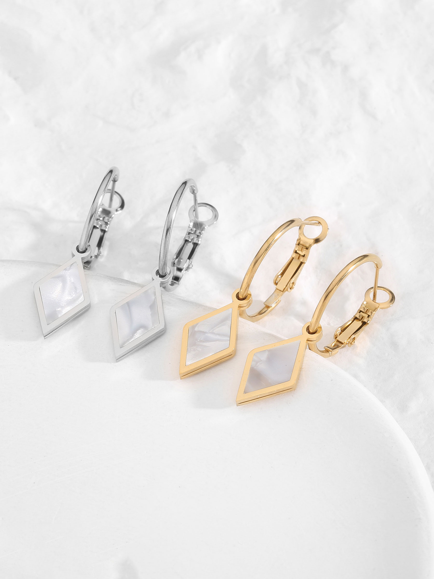 Detalles de pendientes aros colgantes con rombos de nácar - acero inoxidable BS-YH63257-YH63258