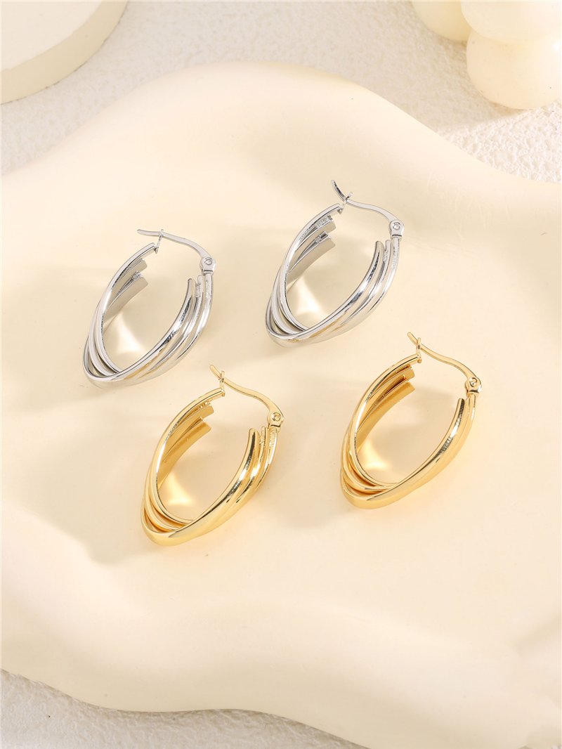 Detalles de pendientes aros alargados efecto triple - acero inoxidable BS-YS361-YS362