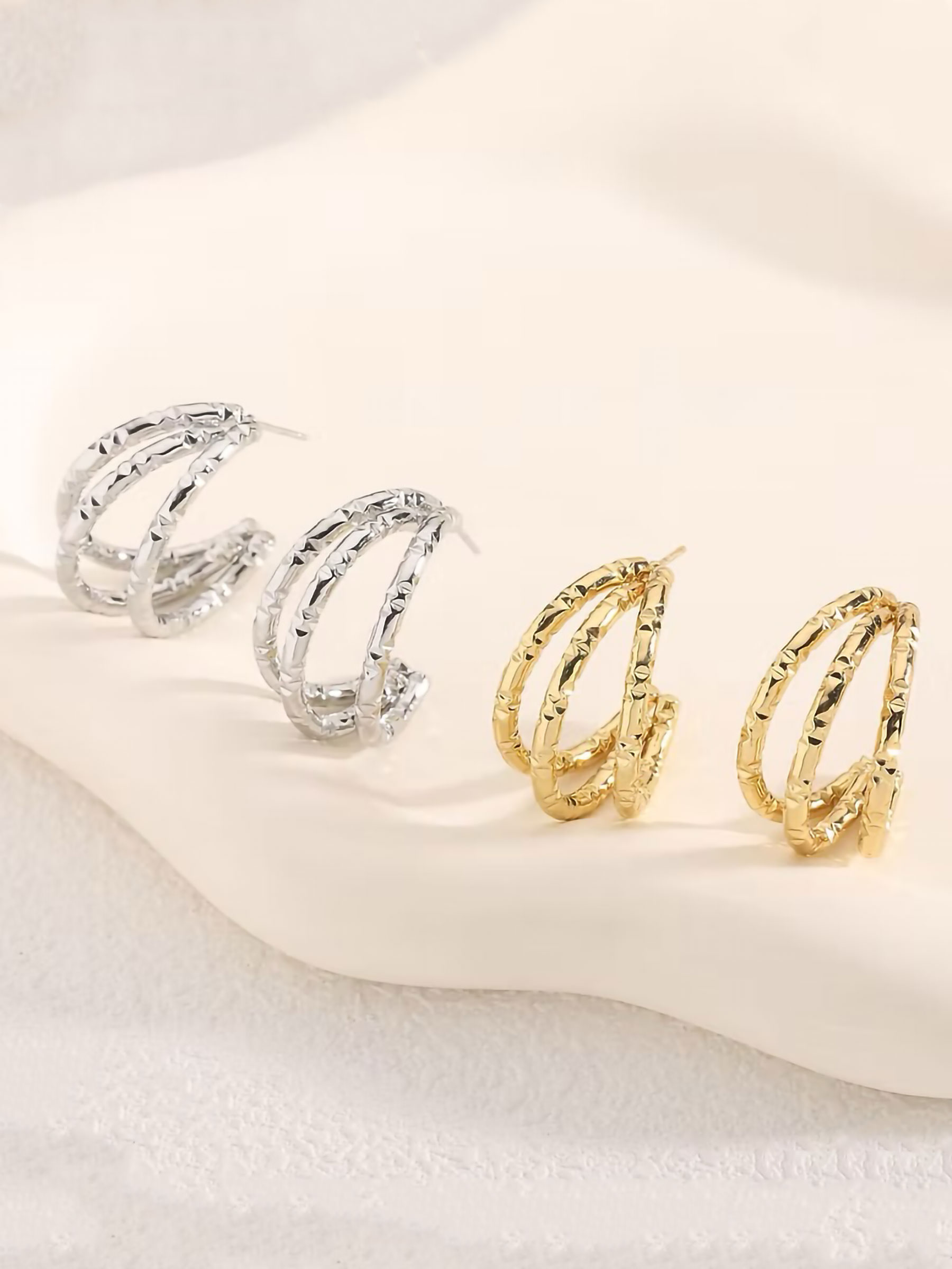 Detalles de pendientes aros efecto triple - acero inoxidable BS-YS375-YS376