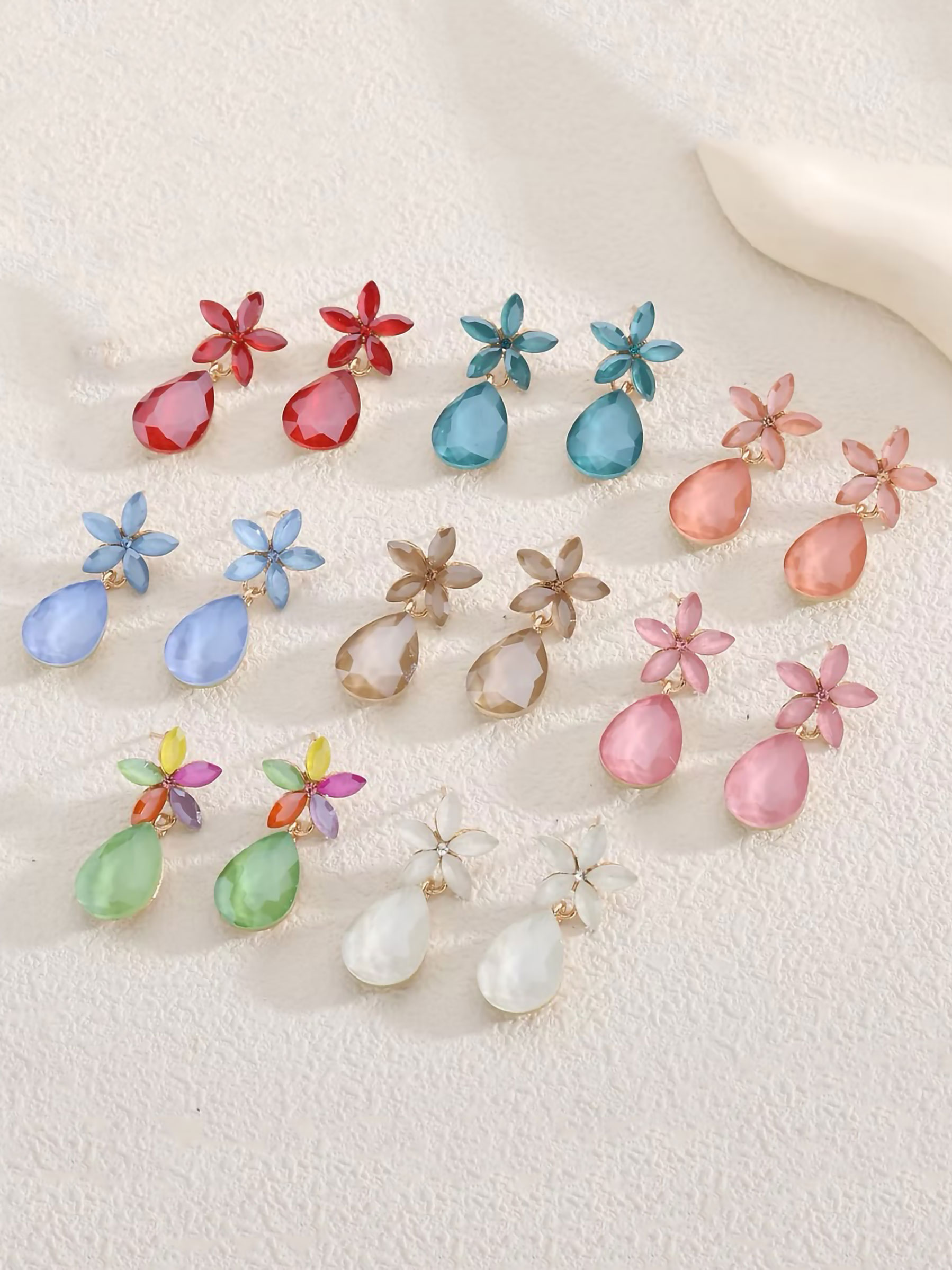 Detalles de pendientes fiesta flor con pedrería - acero inoxidable BS-PXY007