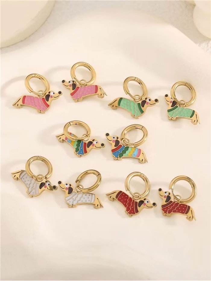 Detalles de pendientes aros colgantes con perro salchicha esmaltado - acero inoxidable BS-PDH62348