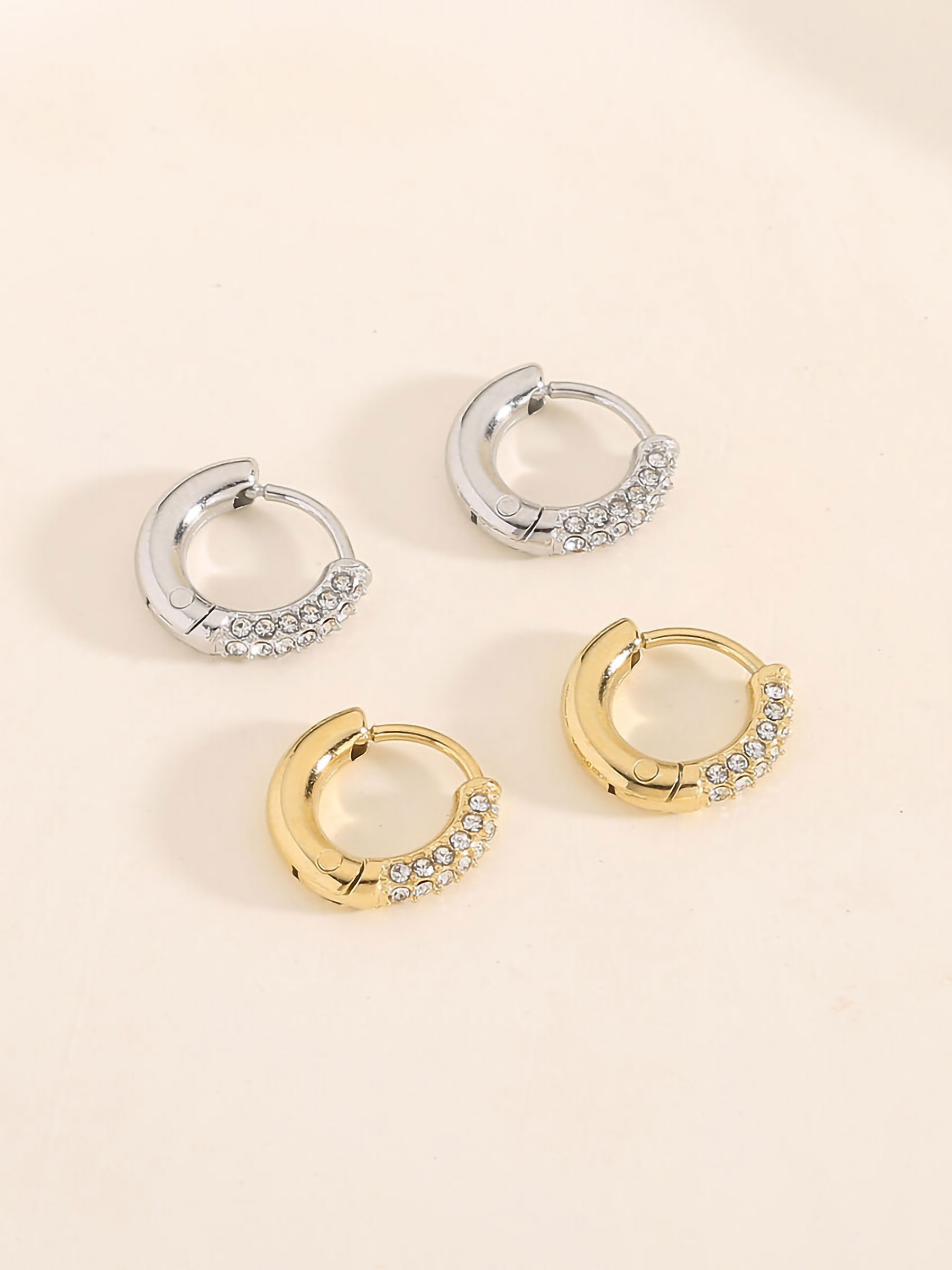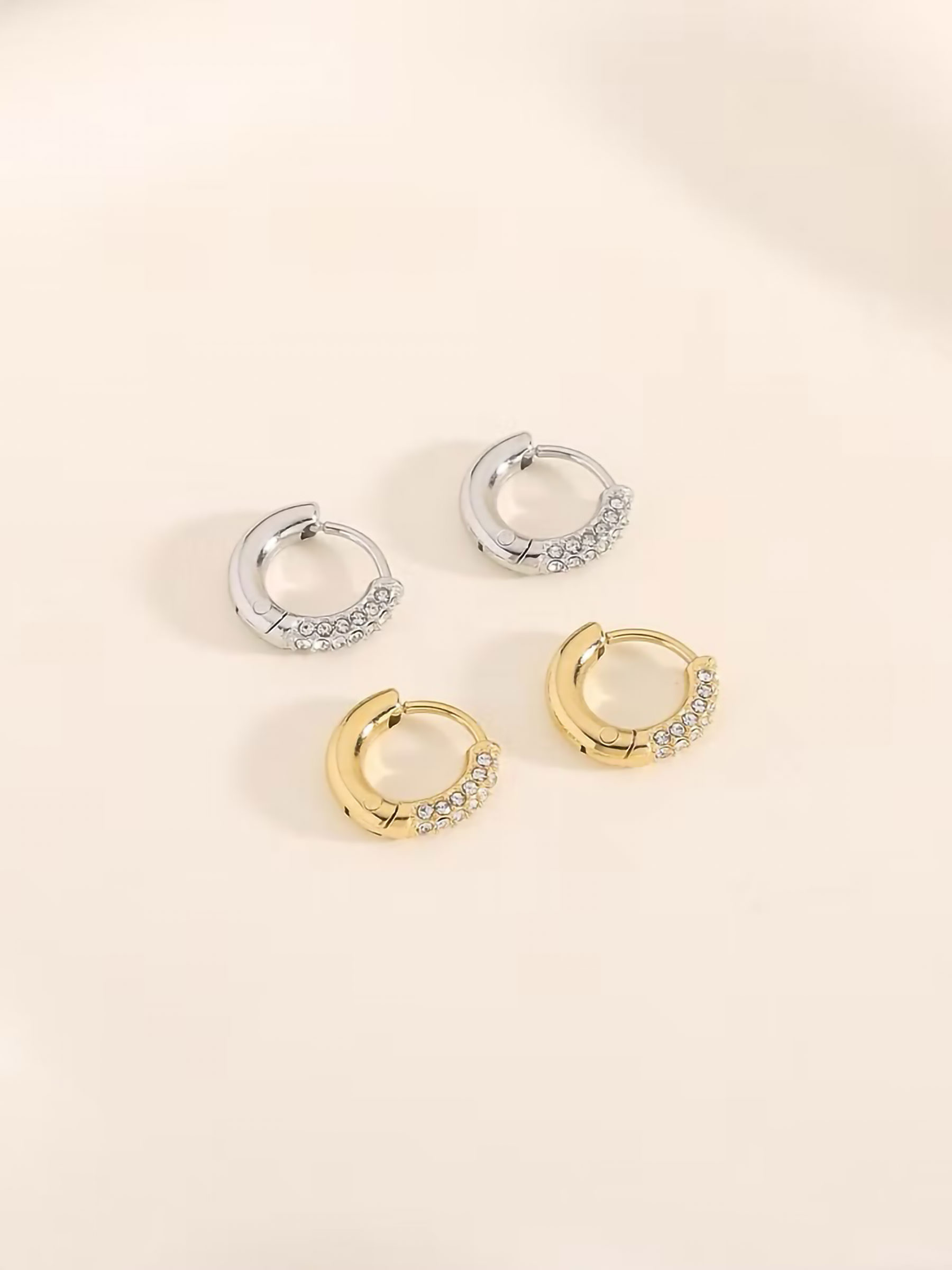 Pendientes mini aros con circonitas - Acero inoxidable Pendientes mini aros con circonitas - Acero inoxidable