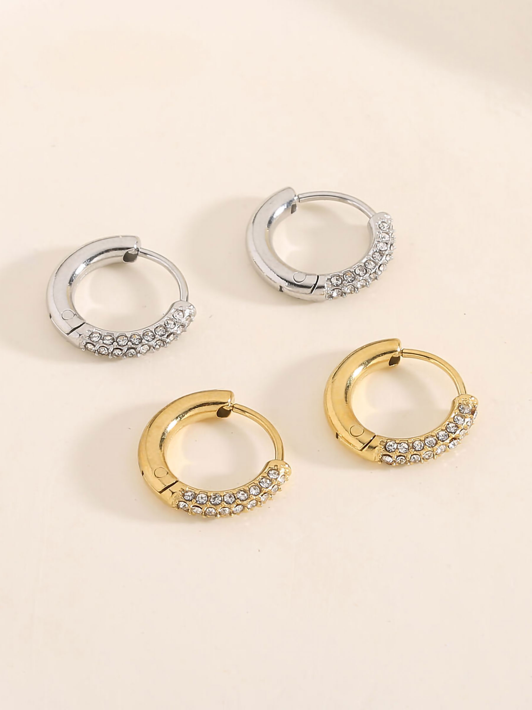 Detalles de pendientes aros con circonitas - acero inoxidable BS-TG227-TG228