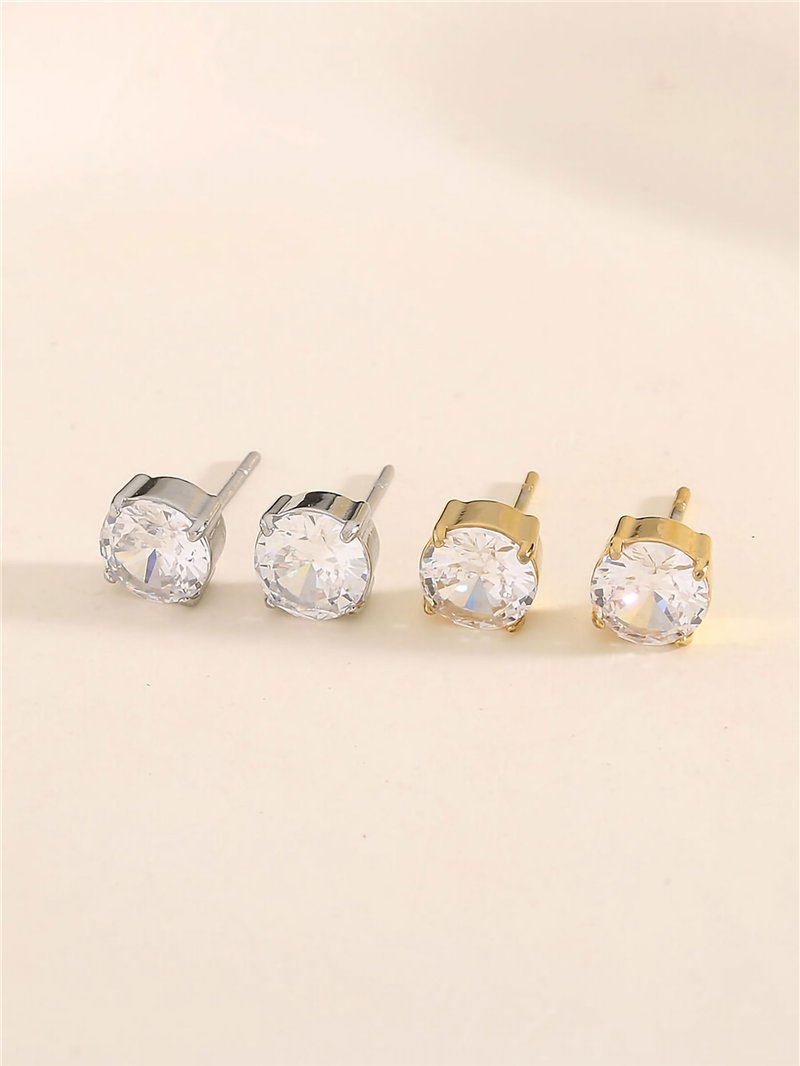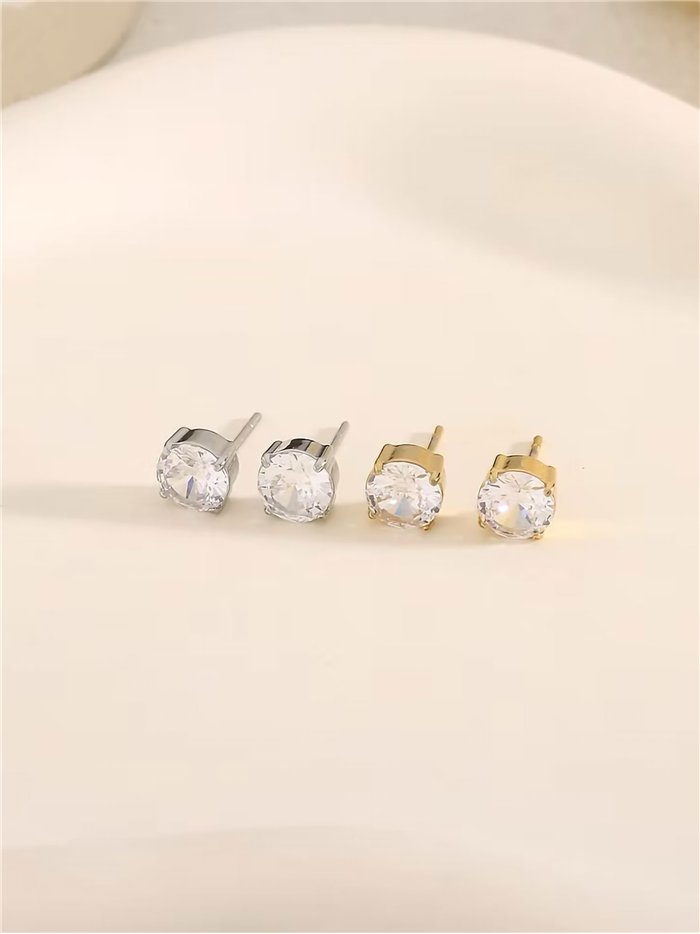 Detalles de pendientes redondos con circonitas - acero inoxidable BS-TG255-TG256