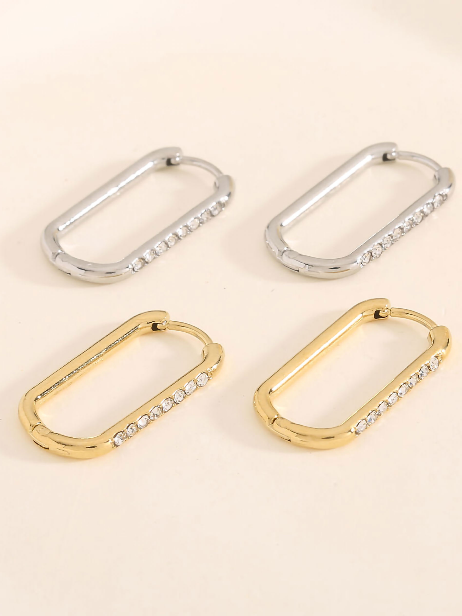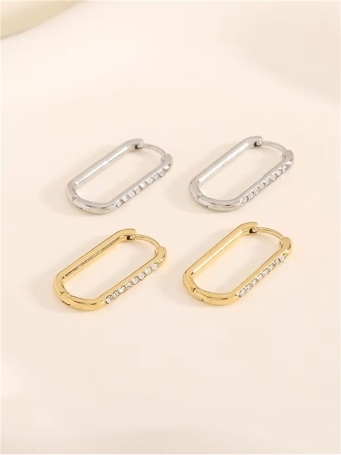 Detalles de pendientes aros rectangulares con circonitas - acero inoxidable BS-TG245-TG246
