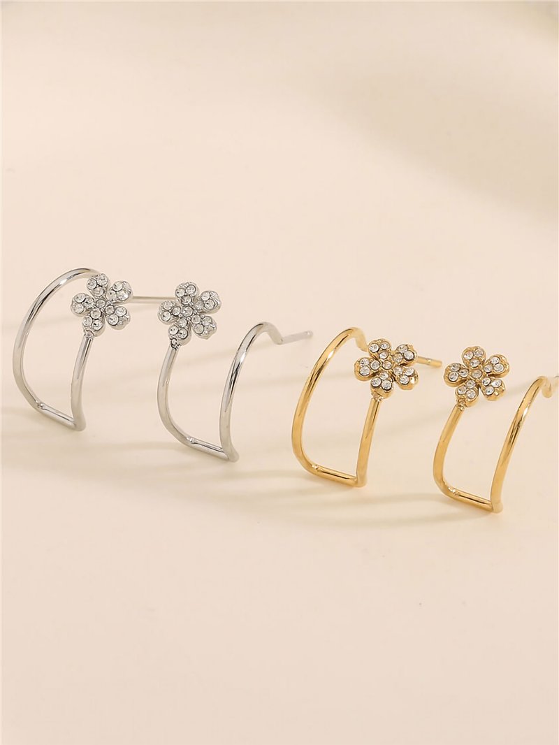 Detalles de pendientes aro flor con circonitas BS-QK1828-QK1829