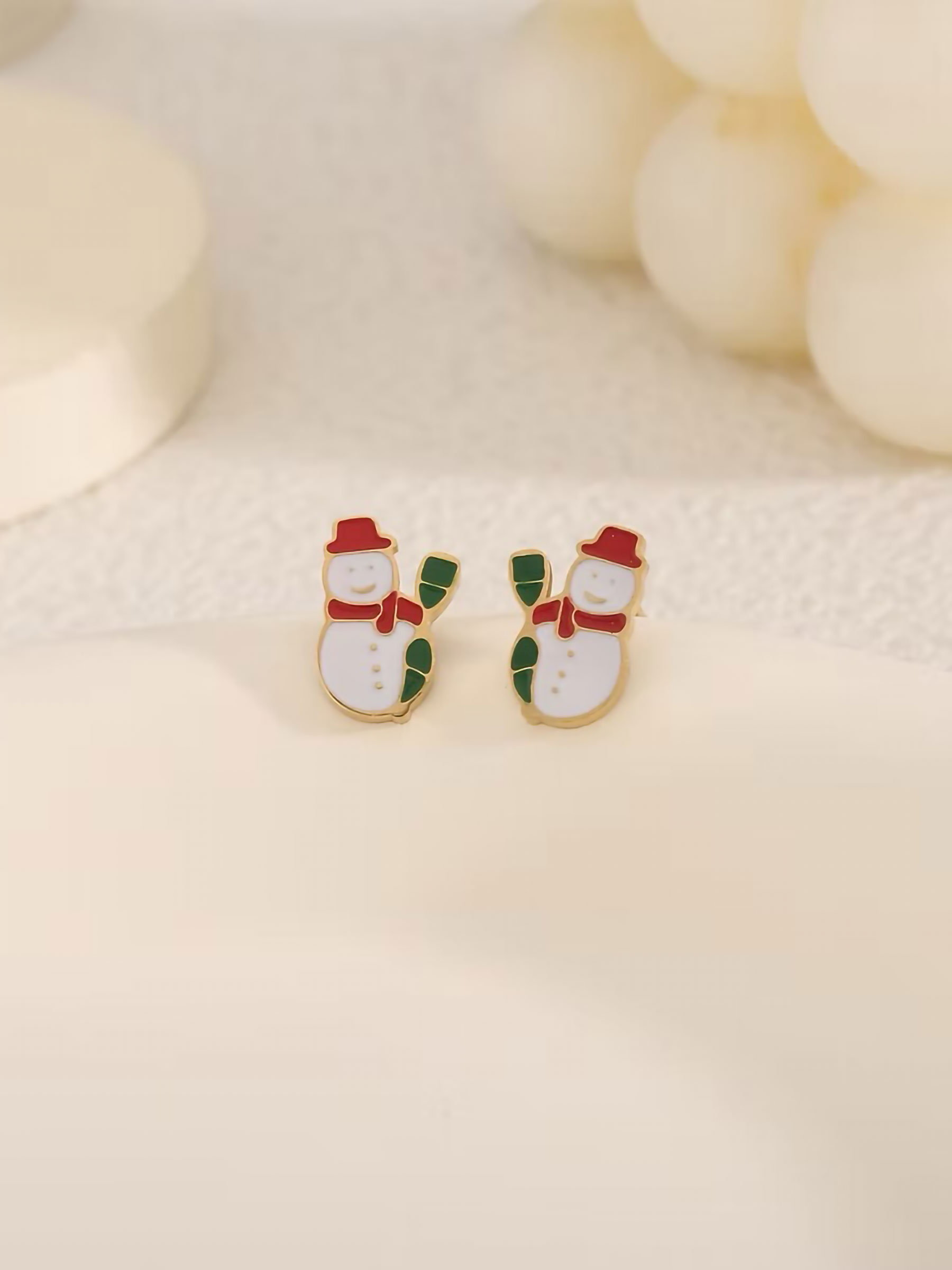 Detalles de pendientes muñeco de nieve esmaltado BS-WF575