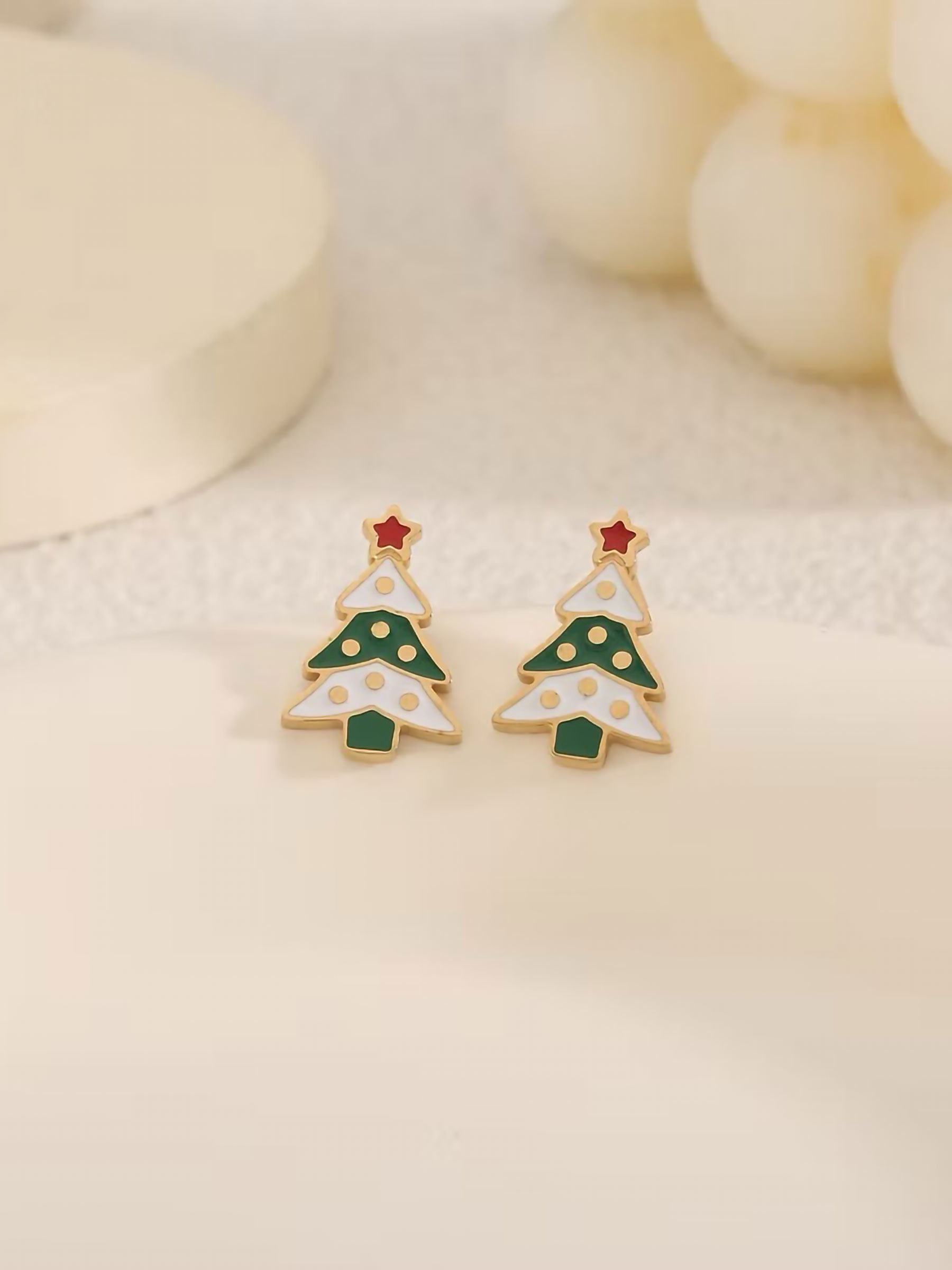 Detalles de pendientes arbolito de navidad esmaltado BS-WF576