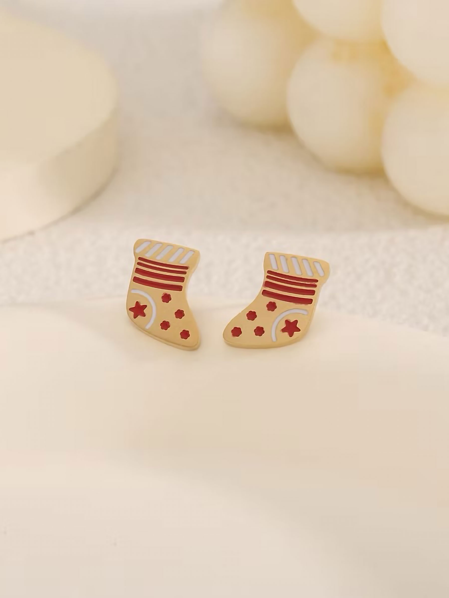 Detalles de pendientes calcetín navideño esmaltado BS-WF582
