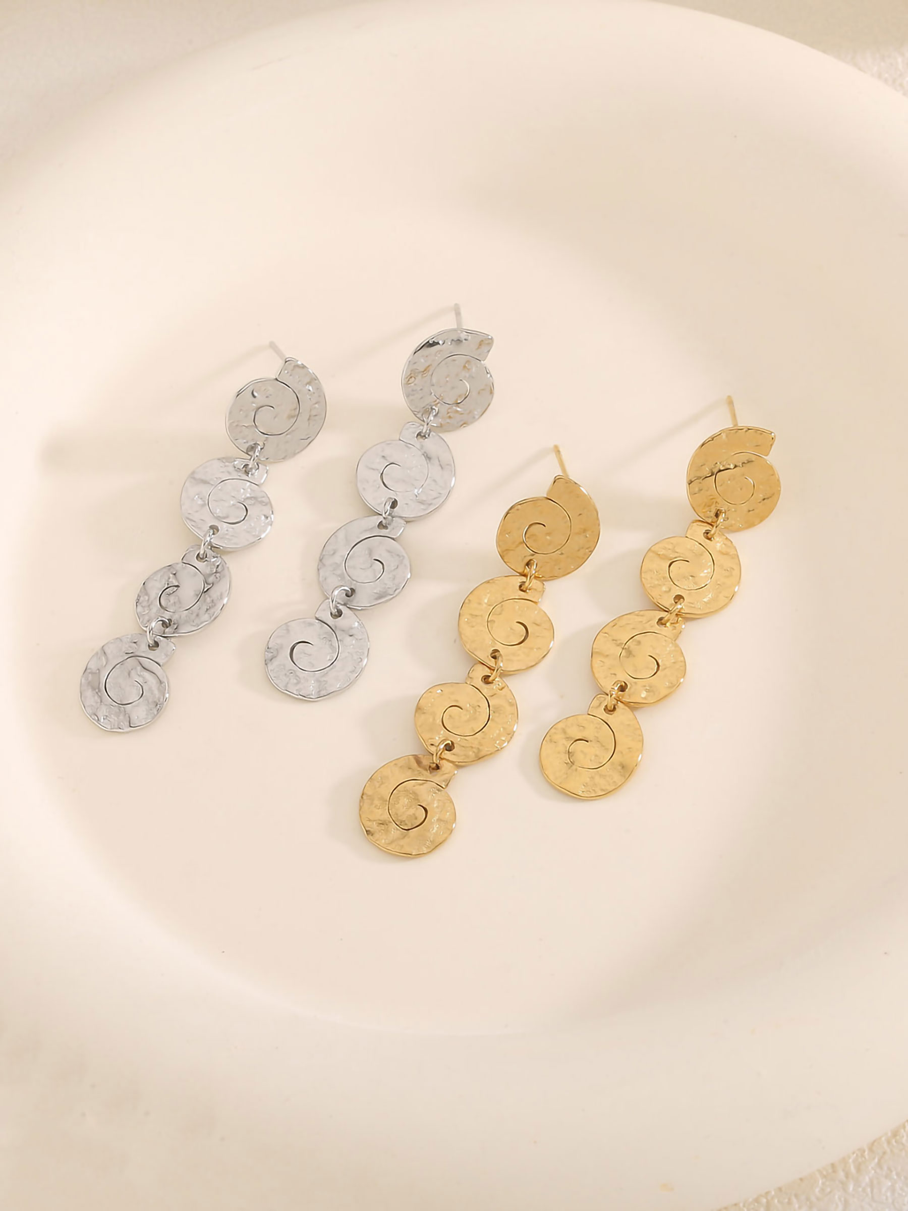 Pendientes largo caracola efecto martillado