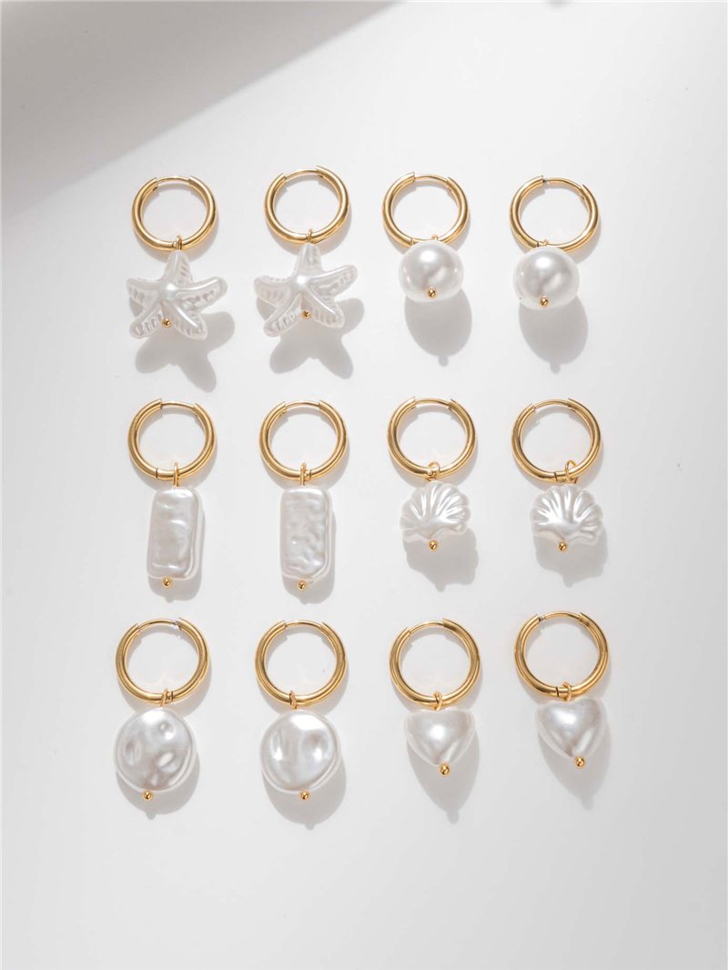 Pendientes aro con charms marinos de perla