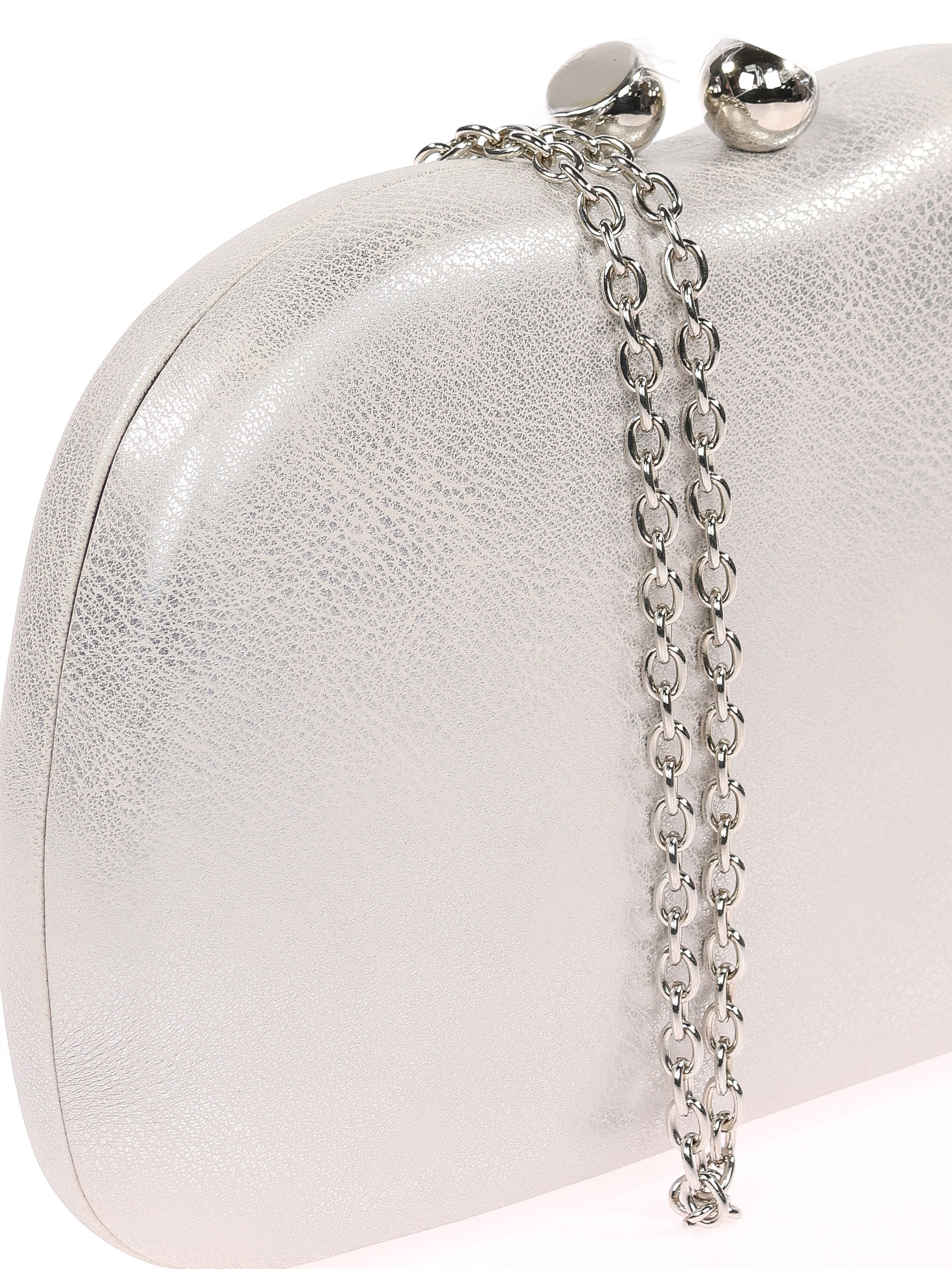 Bolso de fiesta. Material polipiel. Efecto metalizado. Asa de hombro en cadena. Forro sin bolsillo interior. Cierre mediante imán.