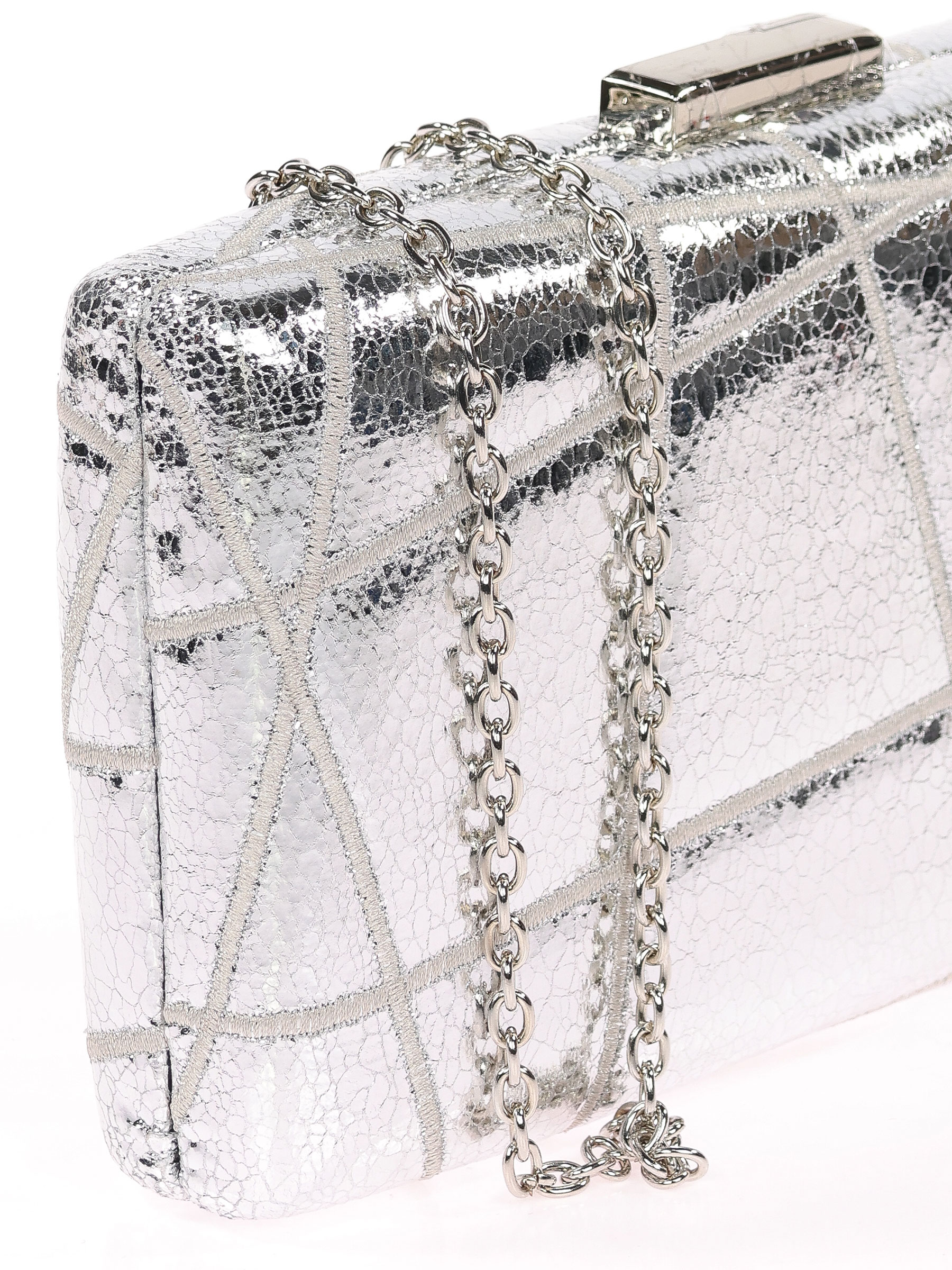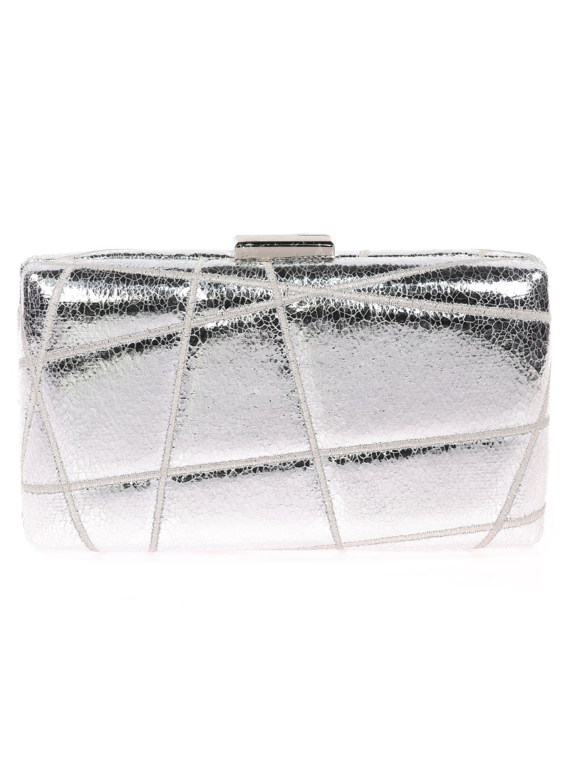 Bolso de fiesta. Material polipiel. Efecto metalizado. Asa de hombro en cadena. Forro sin bolsillo interior. Cierre metálico plateado.