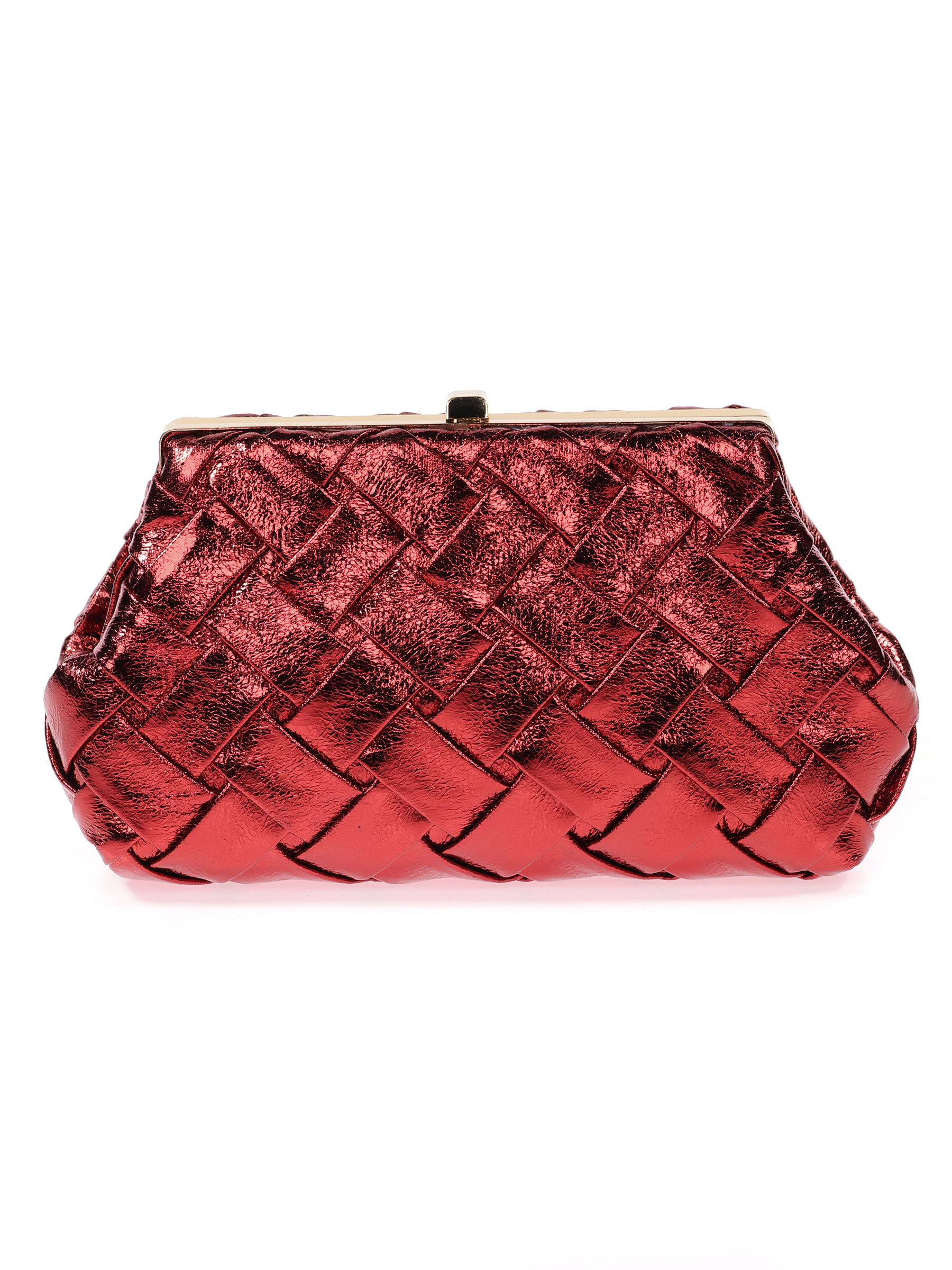 Detalles de AD-26302 GRANATE bolso clutch de fiesta polipiel trenzado