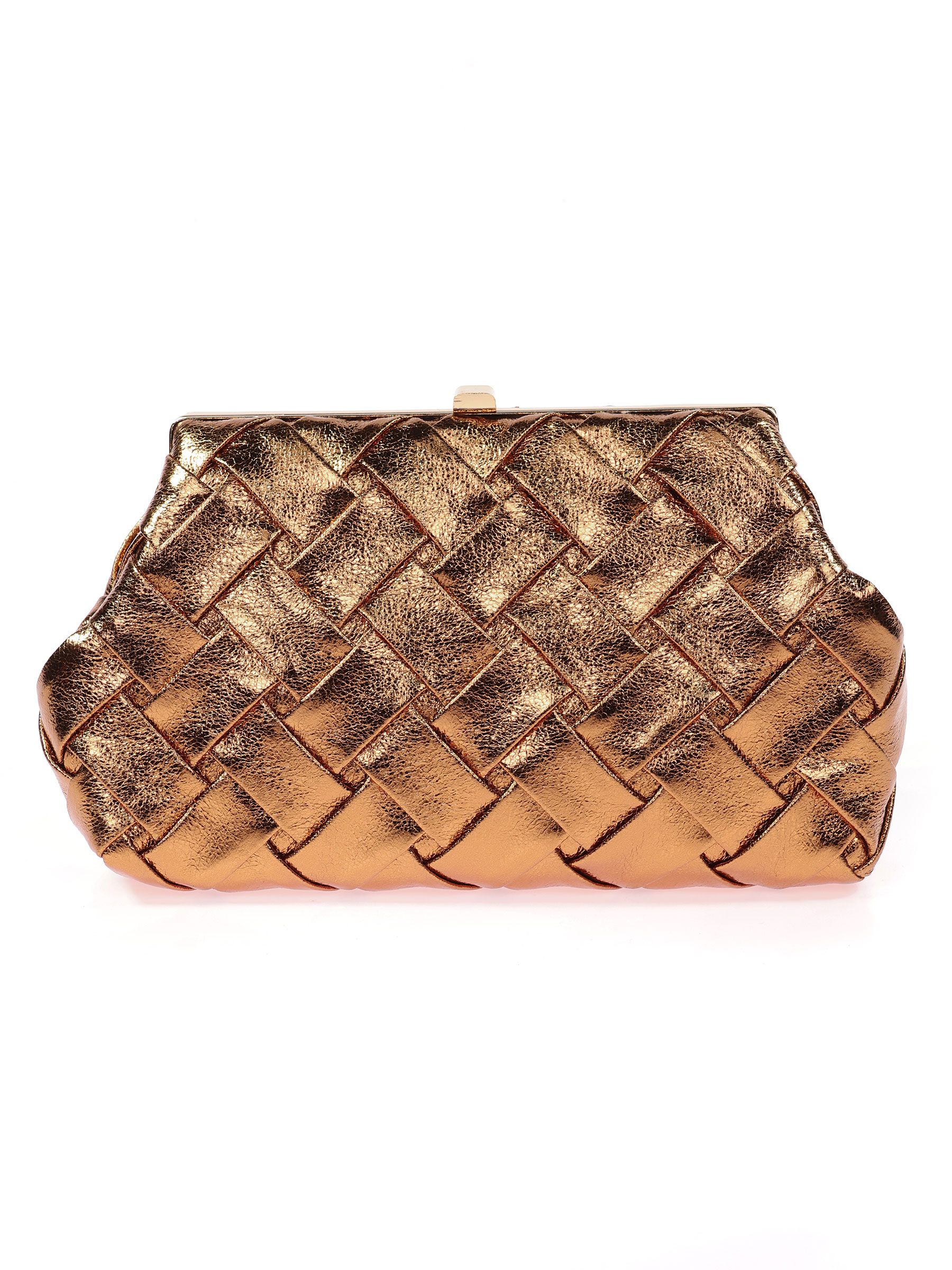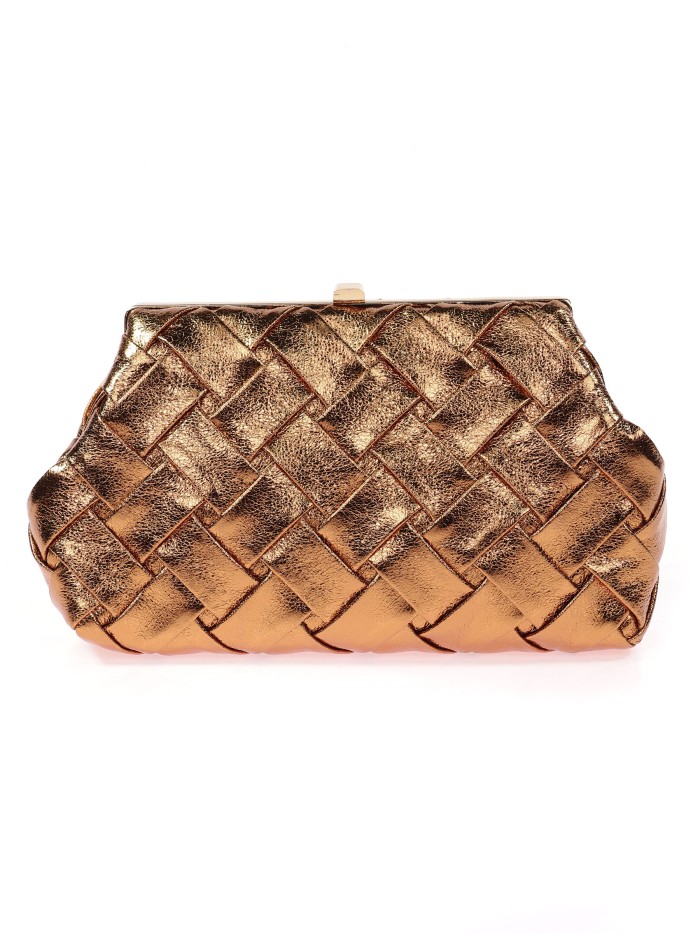 Bolso clutch de fiesta polipiel trenzado bronce