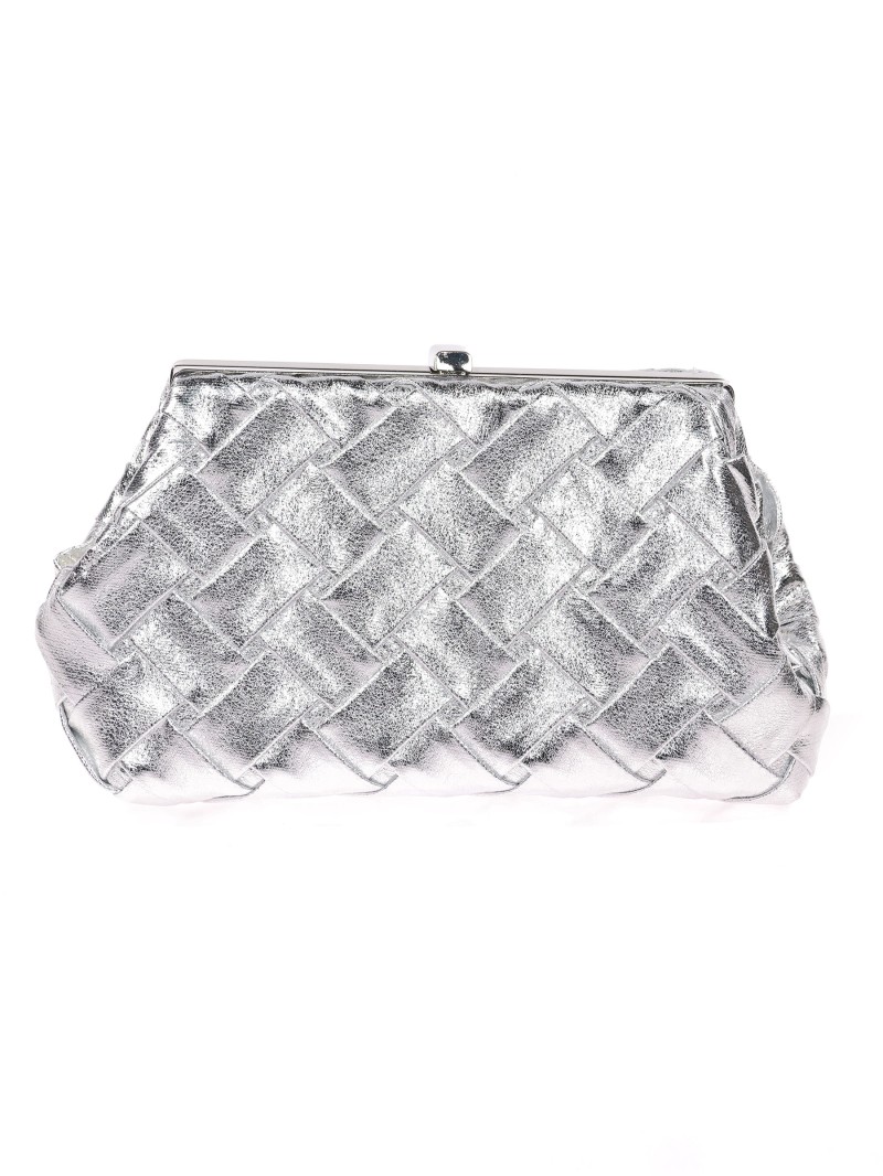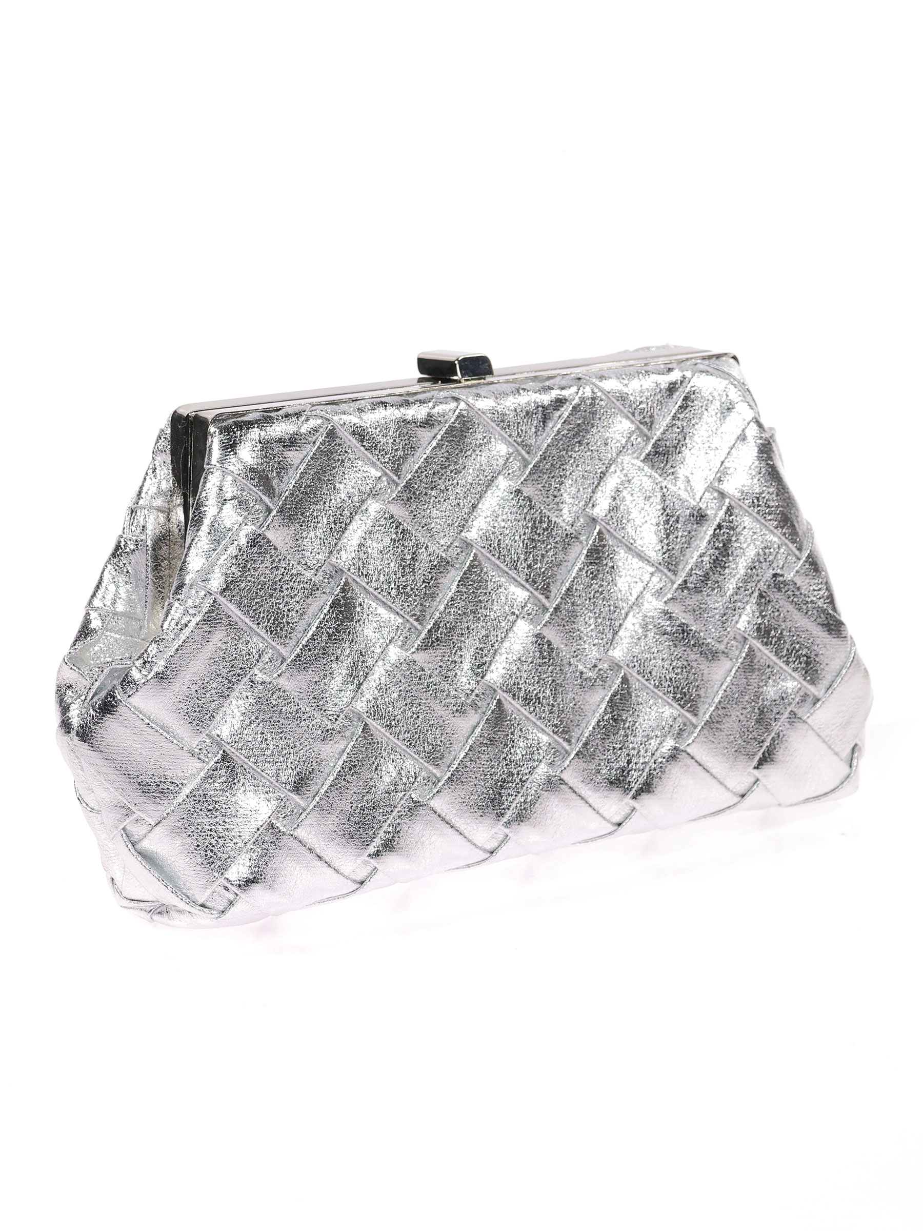 Detalles de AD-26302 PLATA bolso clutch de fiesta polipiel trenzado