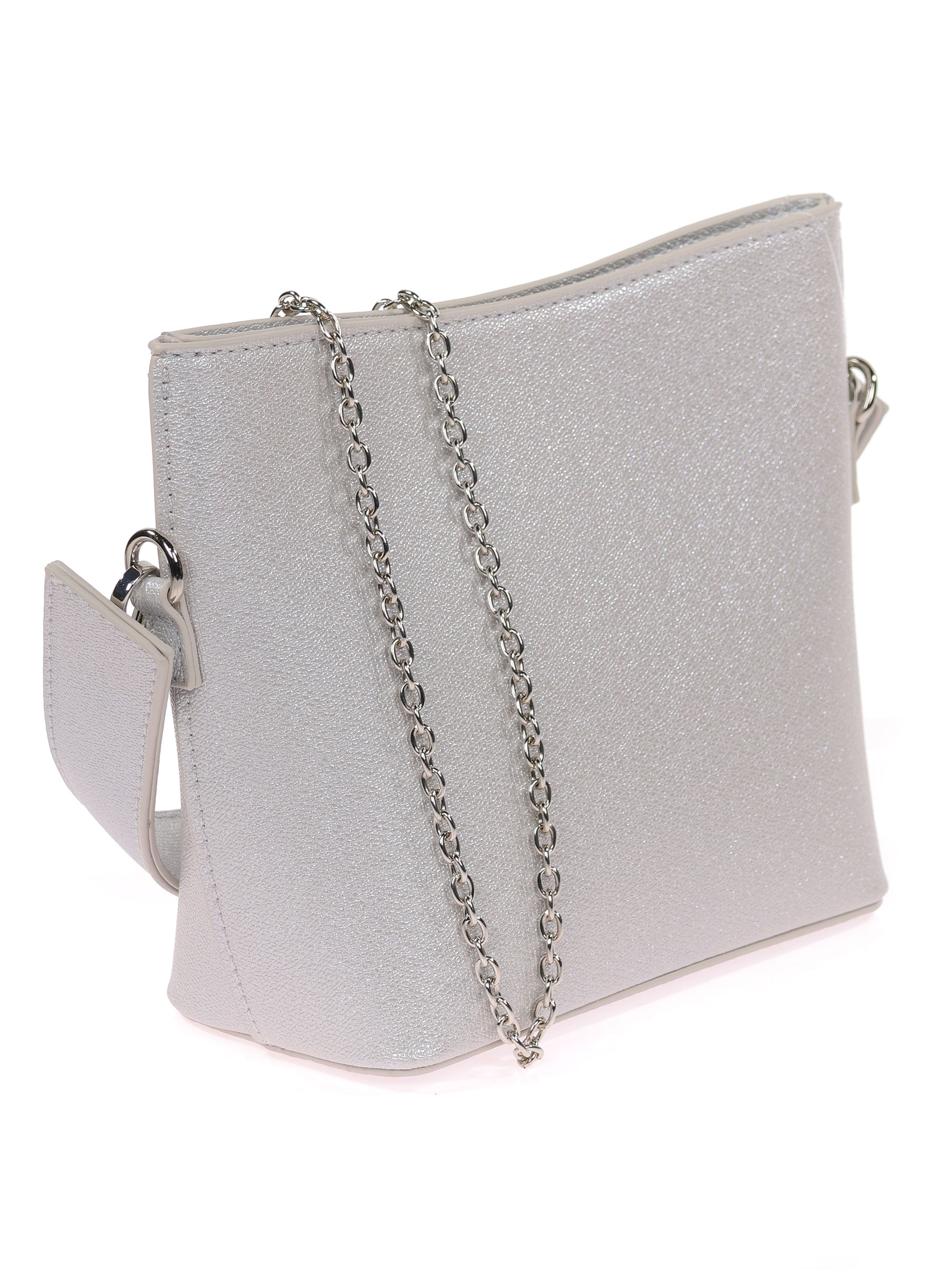 Bolso de fiesta. Material polipiel. Efecto metalizado. Asa de mano extraíble. Asa de hombro en cadena. Bolsillo Interior con cierre mediante cremallera. Cierre mediante imán.