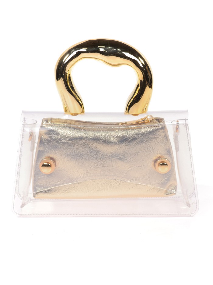 Bolso de fiesta. Material vinilo. Detalle asa de mano efecto metálico. Asa de hombro ajustable y extraíble. Bolsillo Interior extraíble de polipiel con cierre mediante cremallera. Cierre mediante imán en la solapa.