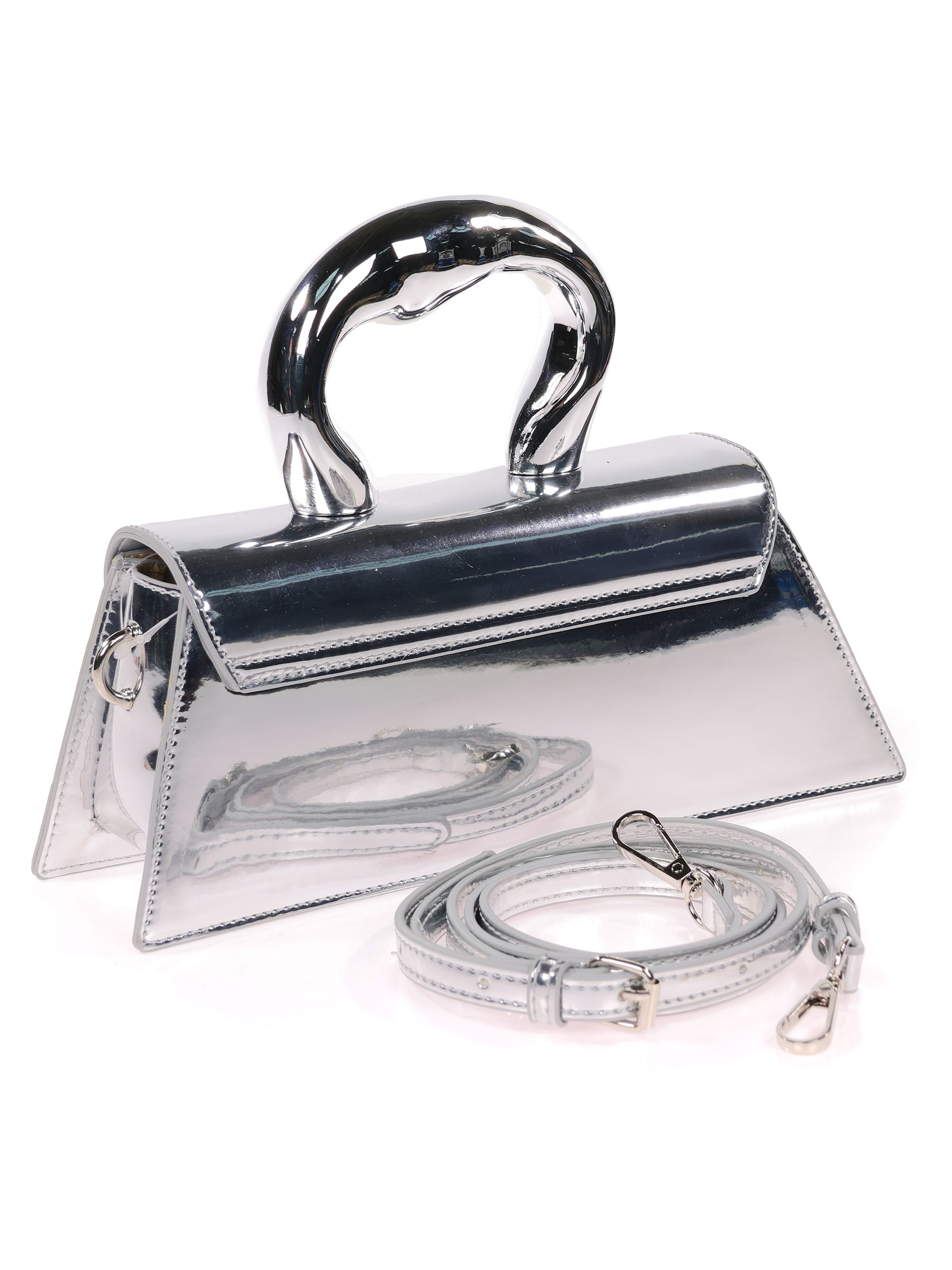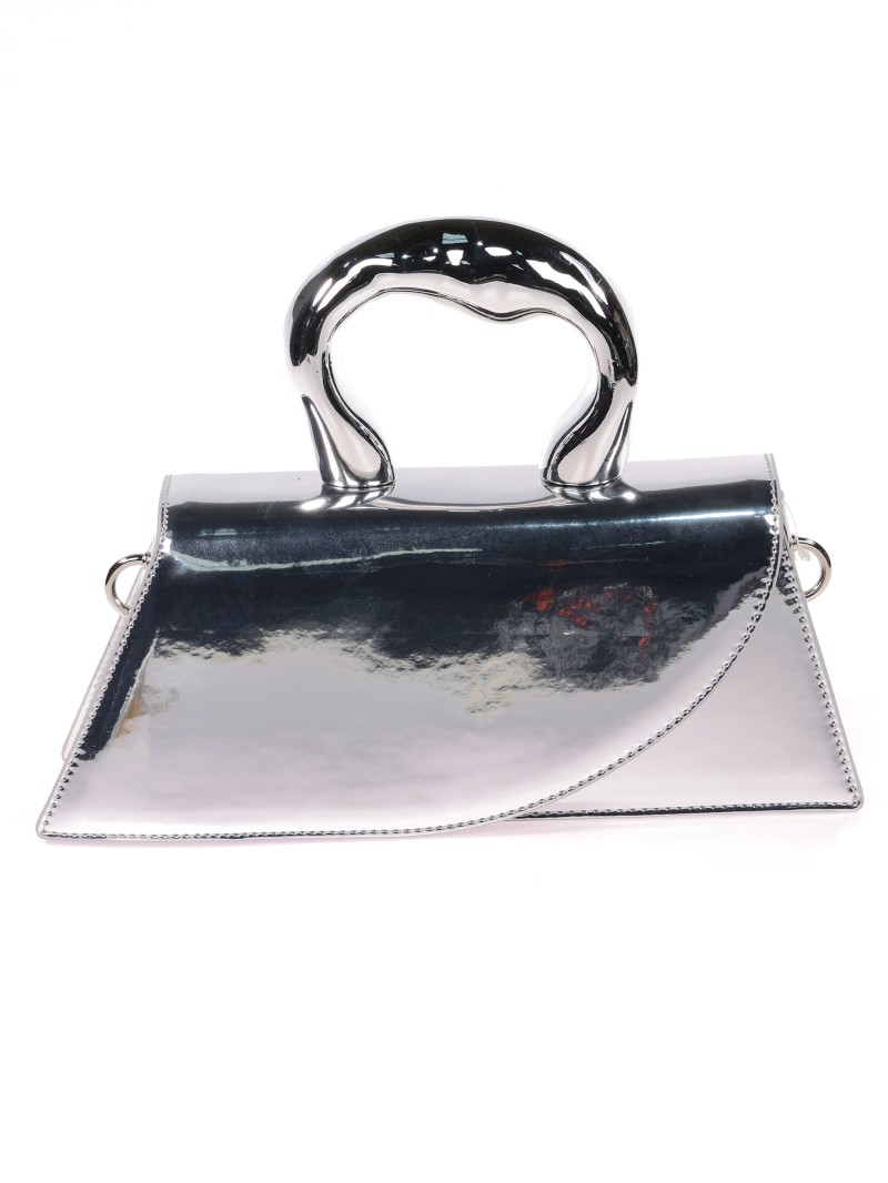 Mini bolso tote de fiesta acharolado plata