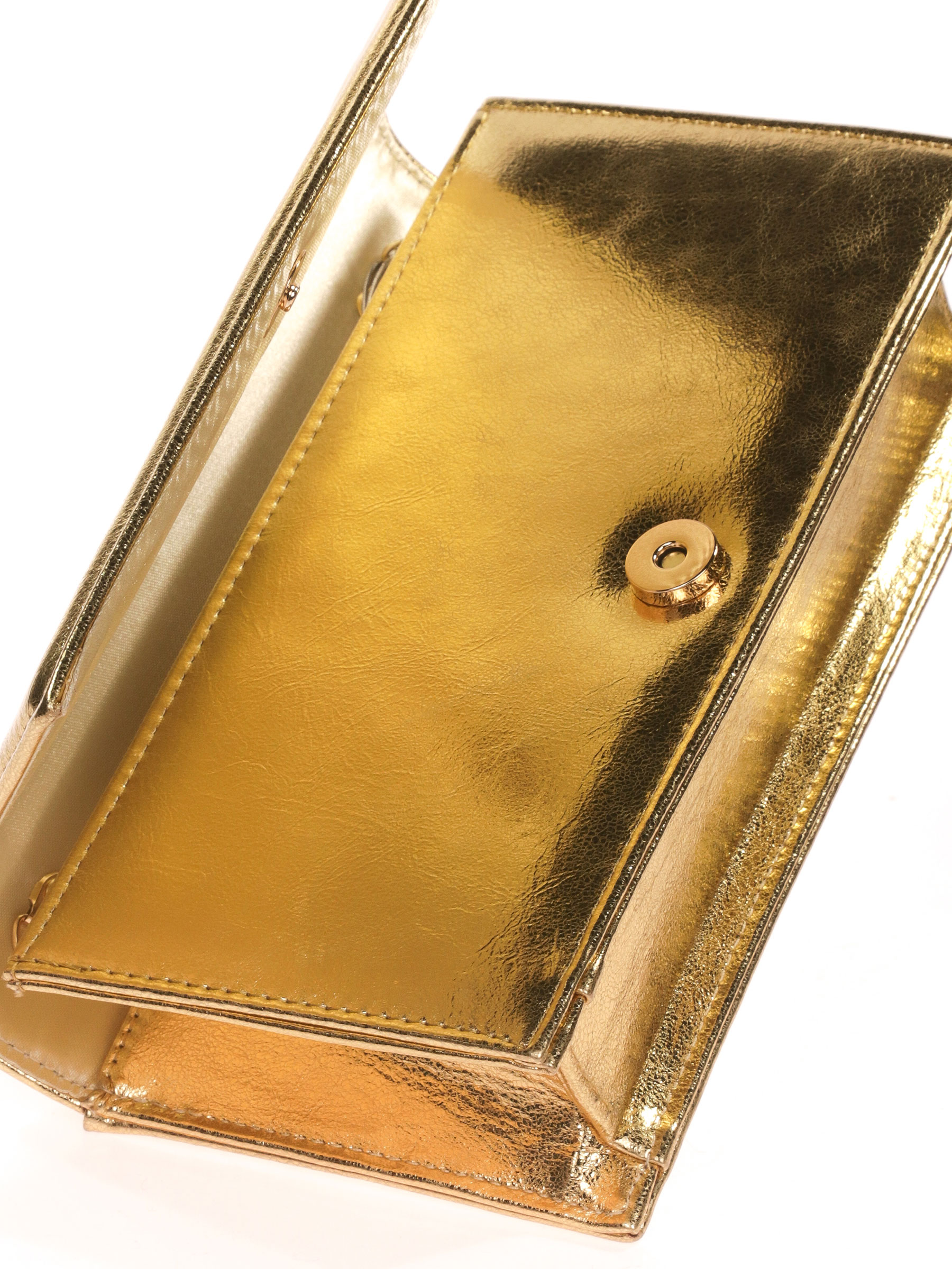 Bolso de fiesta. Material polipiel. Asa de hombro en cadena. Forro con bolsillo interior. Cierre mediante imán.