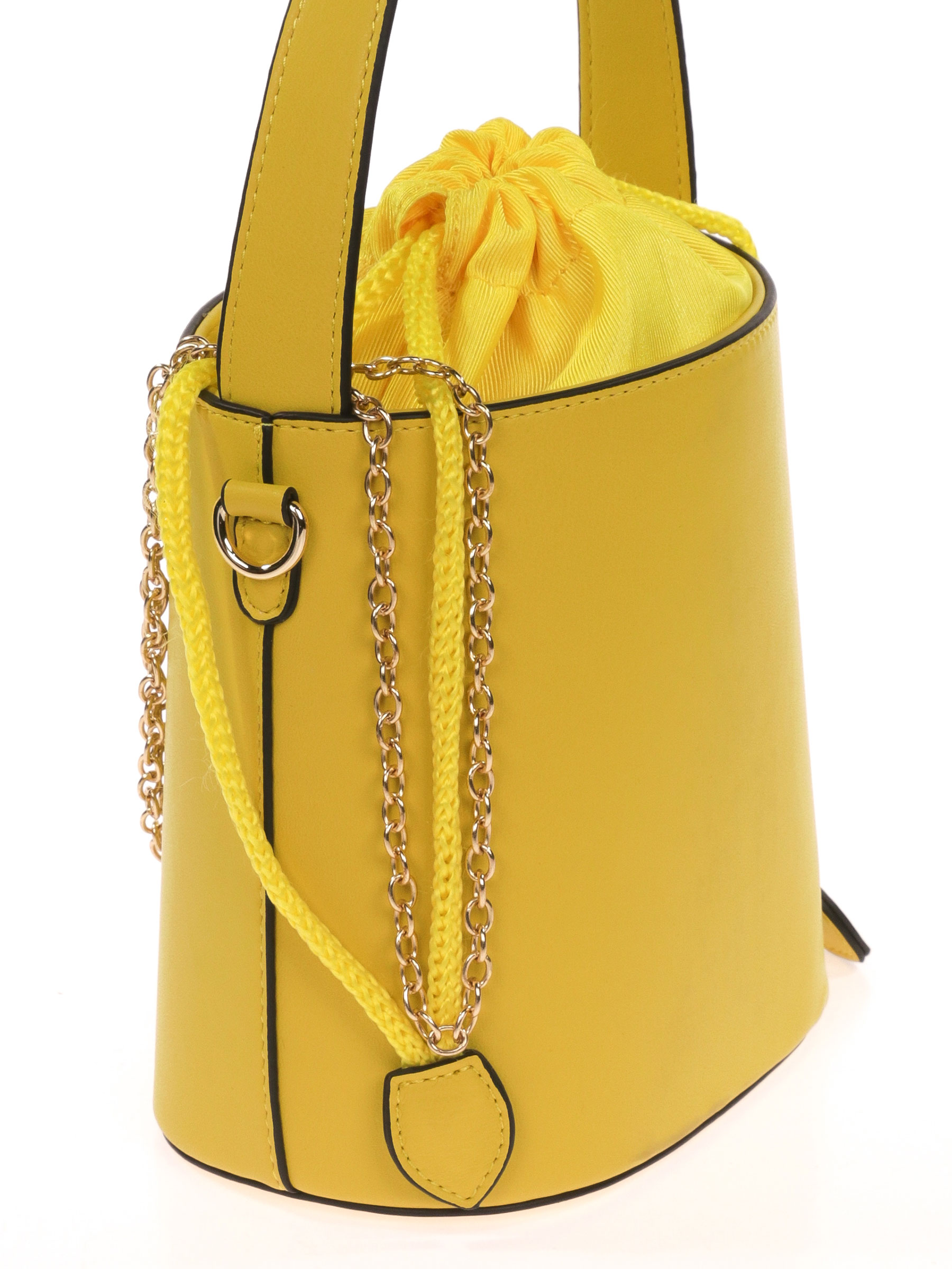 Bolso de fiesta. Material polipiel. Asa de mano y asa de hombro en cadena. Cierre mediante fruncido.