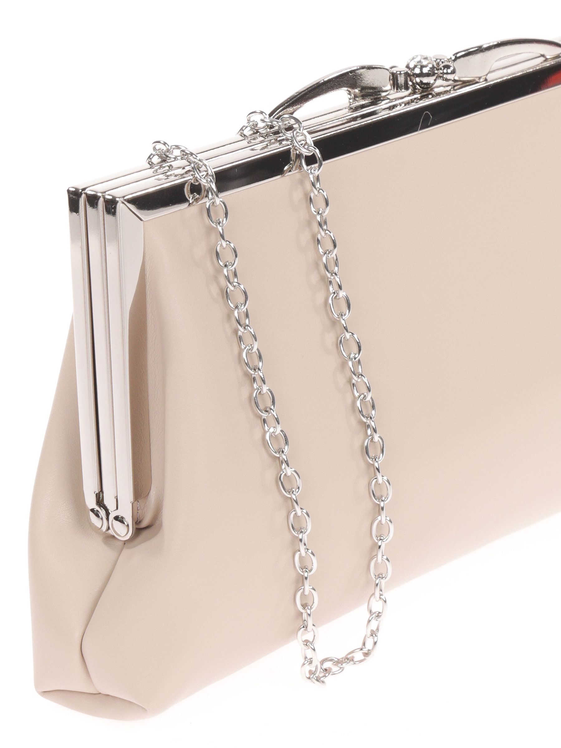 Bolso de fiesta. Material polipiel. Asa de hombro en cadena. Interior forrado con dos compartimentos, uno de ellos con bolsillo. Cierre mediante boquilla plateado.